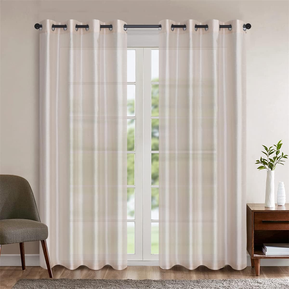 GYROHOME is dedicated to help customers improve the quality of life. A comfortable home is our bay and solid base.A sheer curtain, a pillow cover, a small decoration gives you a pleasing living environment.GYROHOME faux silk sheer curtains would be a good choice for you. Suitable for bedroom, dining room, living room, study, patio door, office, dorm, villa. Specification Size: 52*120inch/132x304cmMaterial: Made of polyester, soft, comfortable and fluffy Note 1.Due to the different monitor and light effect, the actual color of the item might be slightly different from the color showed on the pictures. 2.Please allow 1-3mm measuring deviation due to manual measurement.