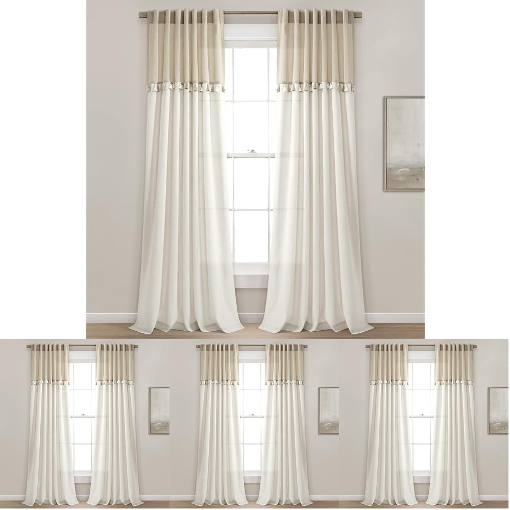 Bring an airy look to your home with the Lush Decor Boho Faux Linen Tassel Color Block Curtains. This linen-textured panel features a modern color block design decorated with a colored tassel trim in between the two complementing colors. These light filtering curtains for bedroom provide moderate privacy while helping to filter sunlight, allowing a soft glow to fill the space. These linen curtains are crafted from a linen-textured cotton fabric blend and are unlined. Sold as 2 panels, each measuring 42 inches wide by 84 inches long. They complement a modern farmhouse, coastal, or boho decor style. These drapes offer seamless installation with a 3" back tab rod pocket, allowing you to easily slide it onto your curtain rod or using clip rings (not included). To care for these living room curtains, simply machine wash cold on the gentle cycle and tumble dry low. Use a steamer to remove wrinkles, if needed.