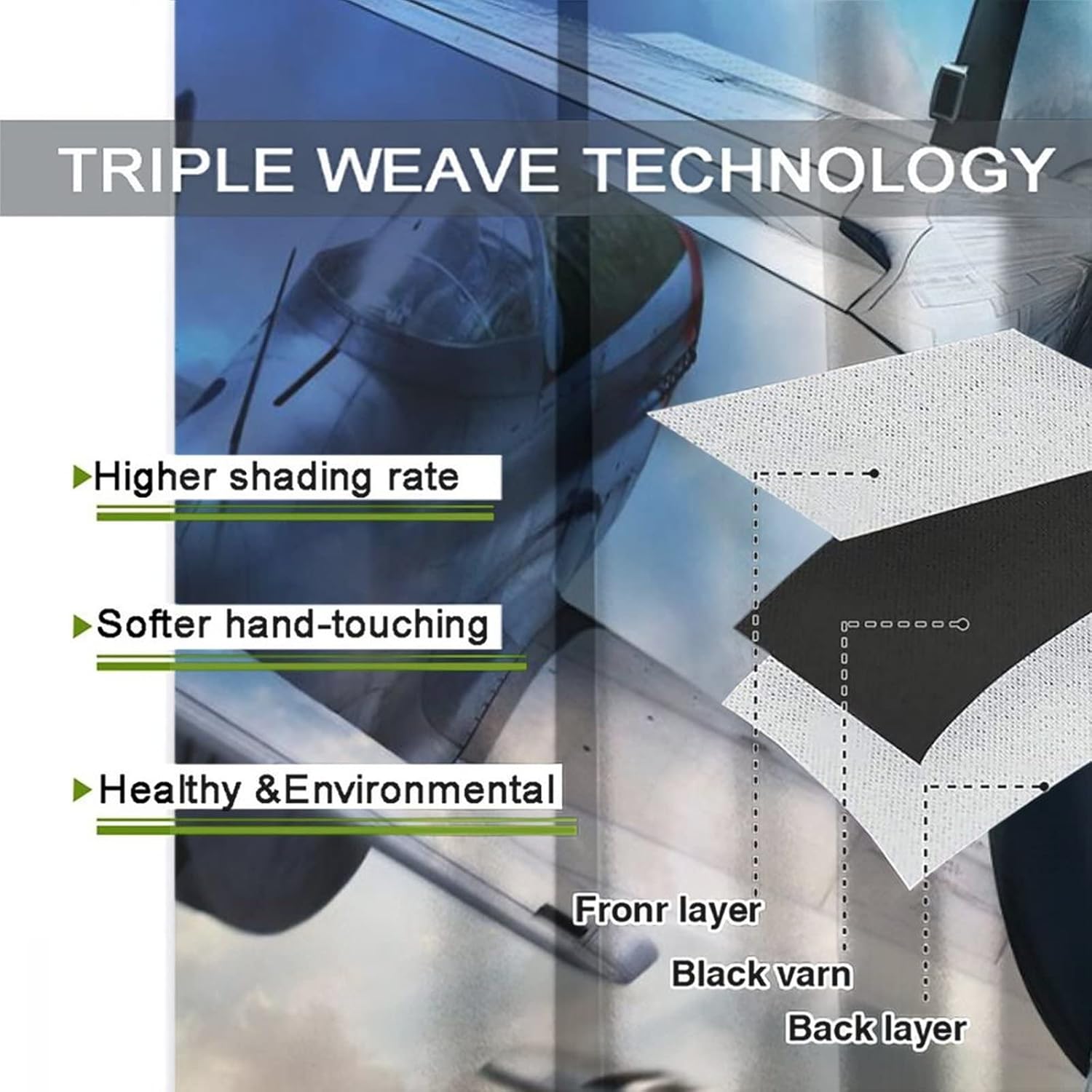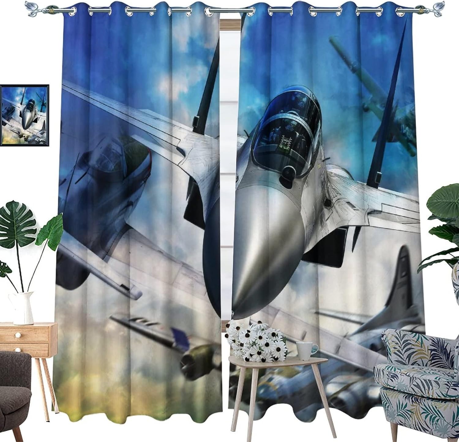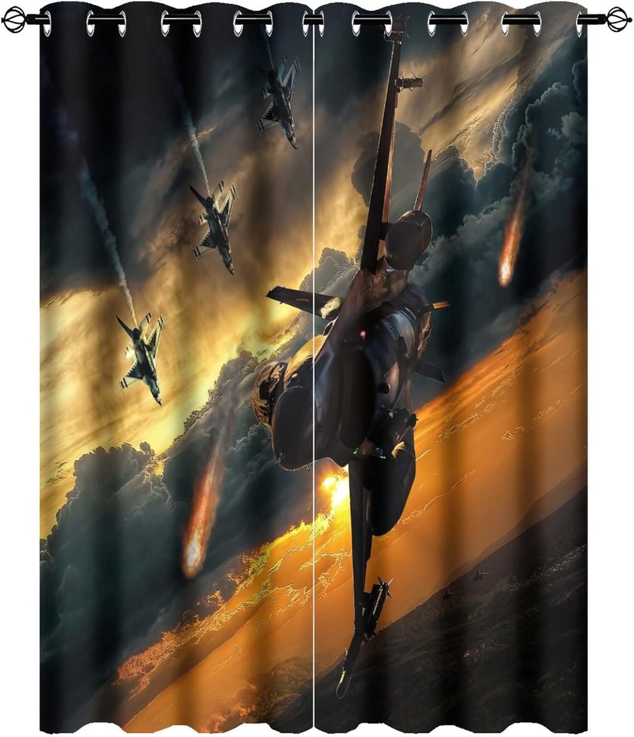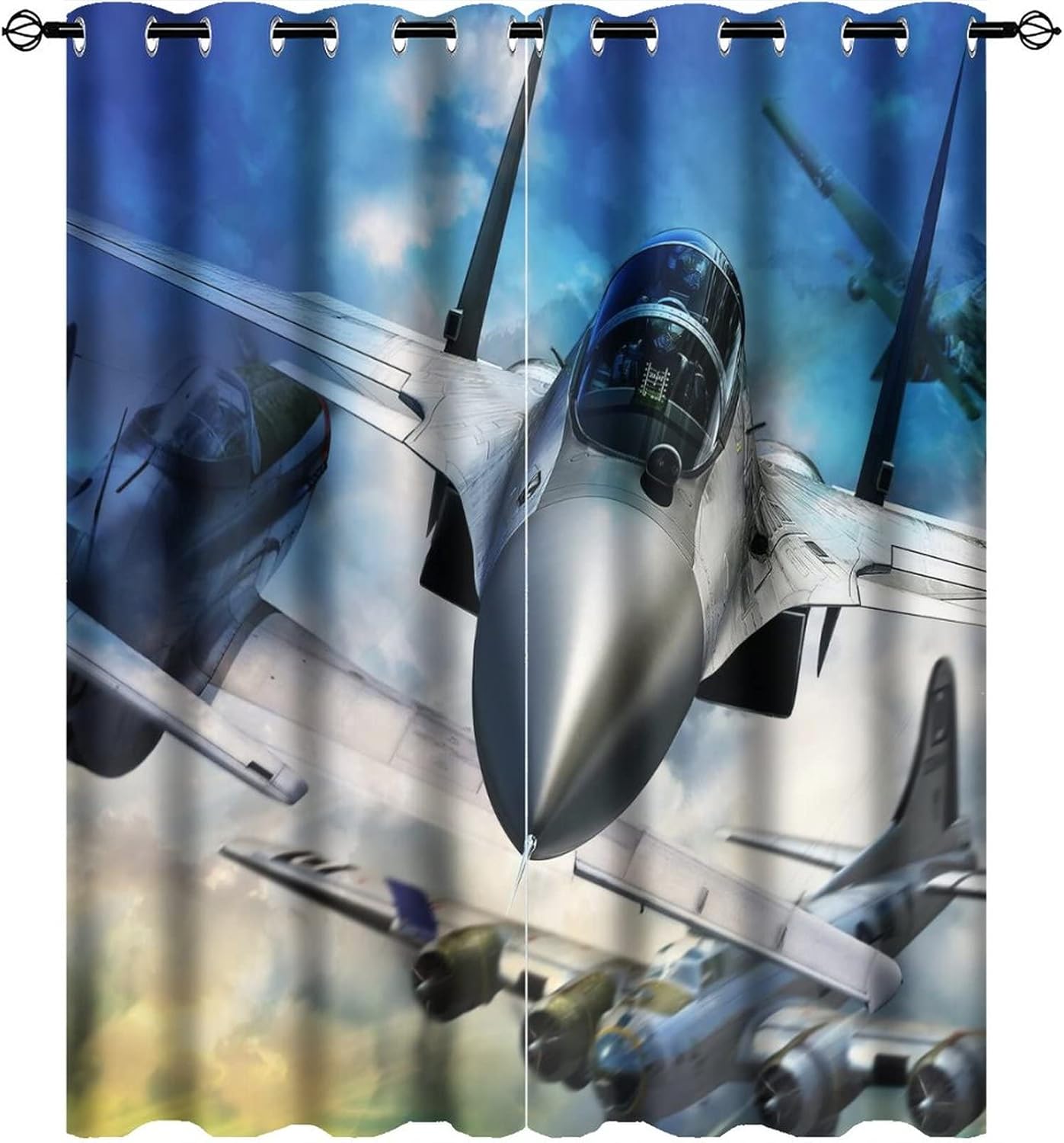 This Vintage Fighter Airplane Curtains can block out 85%-99% sunlight and UV ray ( Darker colors work better), perfect for late sleepers and afternoon naps. Our energy saving curtains insulate against summer heat and winter chill to balance your room temperature, reduce outside noise .Kazynee Custom Design Shop:Our curtains Immerse your home in splashes of color.The 3d print curtains give off a realistic tint in the whole room and turns the room into a magical colorful fairy-scape.Premium Material:Adopt high-quality 100% polyester fabric.Three-layer woven fabric, high-precision black silk shading partition,density of the middle black silk layer is double that of ordinary fabrics, greatly improve the shading effect.HD Printing Technology:High resolution pictures bring a perfect visual experience to your life.Industry-leading HD printing technology, No strange odor. Toxic free and safe.Easy Cleaning:This blackout curtains machine washable, gently cycle, no bleach, tumble dry low, and iron at low temperature settings.Kindly Remind:- Don't use sharp things scratching curtains.- For proper fullness panels should measure 1.5-2 times the width of your window.- 24 Hours customer support.- As different computers display colors differently, the color of the actual item may vary slightly from the above images.