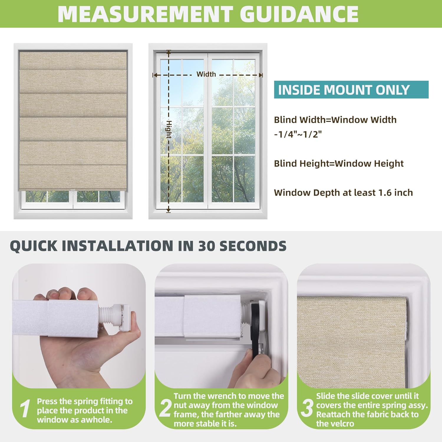 | Included Components | User Manual, Installation Brackets Sets, No Drill Roman Shade included |