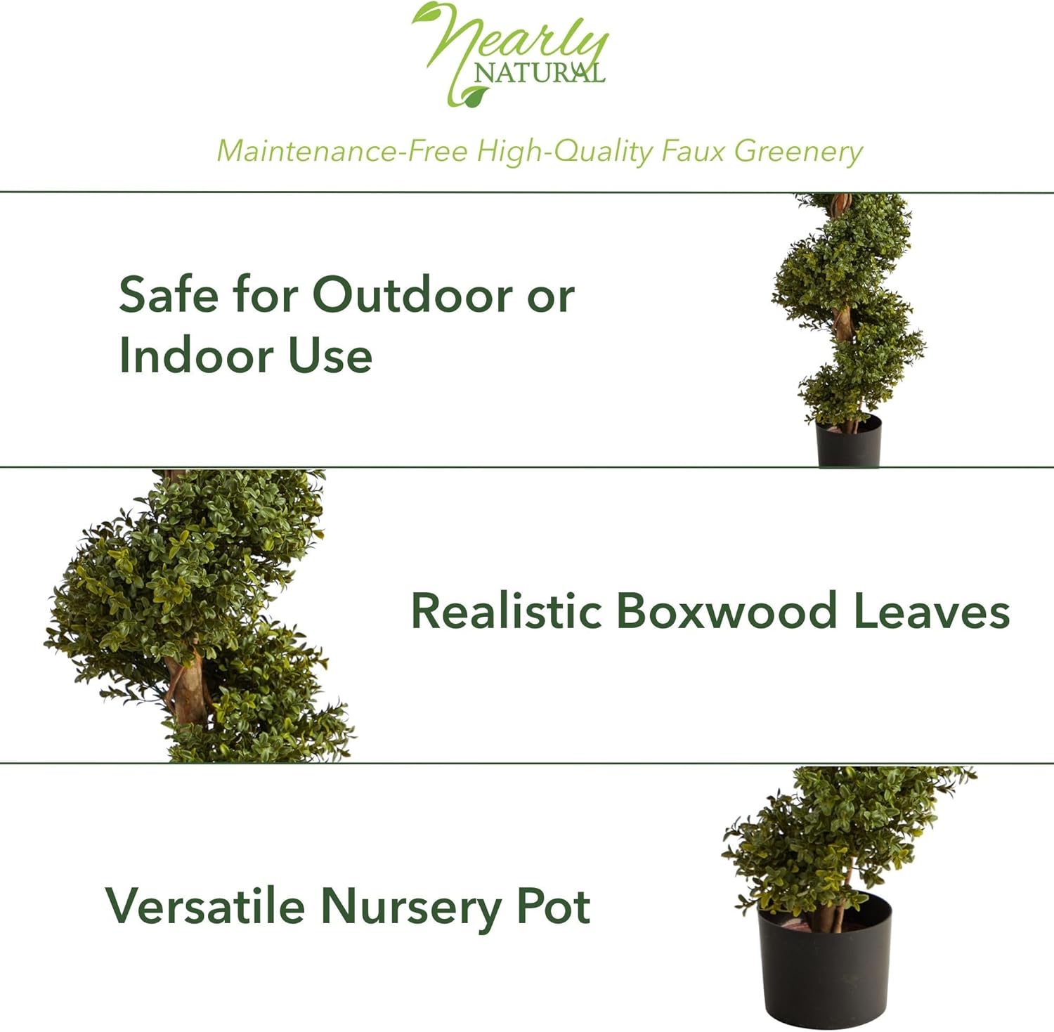 Whirl around this whimsical Artificial Boxwood Topiary Spiral Tree. Exotic to the eye, bring posh, jungle vibes with the twirling greens adorning a trunk like silhouette that delivers a subtle, yet rustic look. Standing 33’ from a black planter (included in height), curate in rooms that need a little green. Perfect for compact spaces like foyers, apartments, or awkward corners. Pair in multiples for cohesion.Silk trees are manufactured using synthetic materials, such as polyester material or plastic, and are well designed and constructed to be life-like in appearance. This item will need to be re-shaped when removed from the secure box to allow it to reach its fullest size. Your artificial plant will look beautiful for years to come; simply wipe clean with a soft dry cloth when needed.