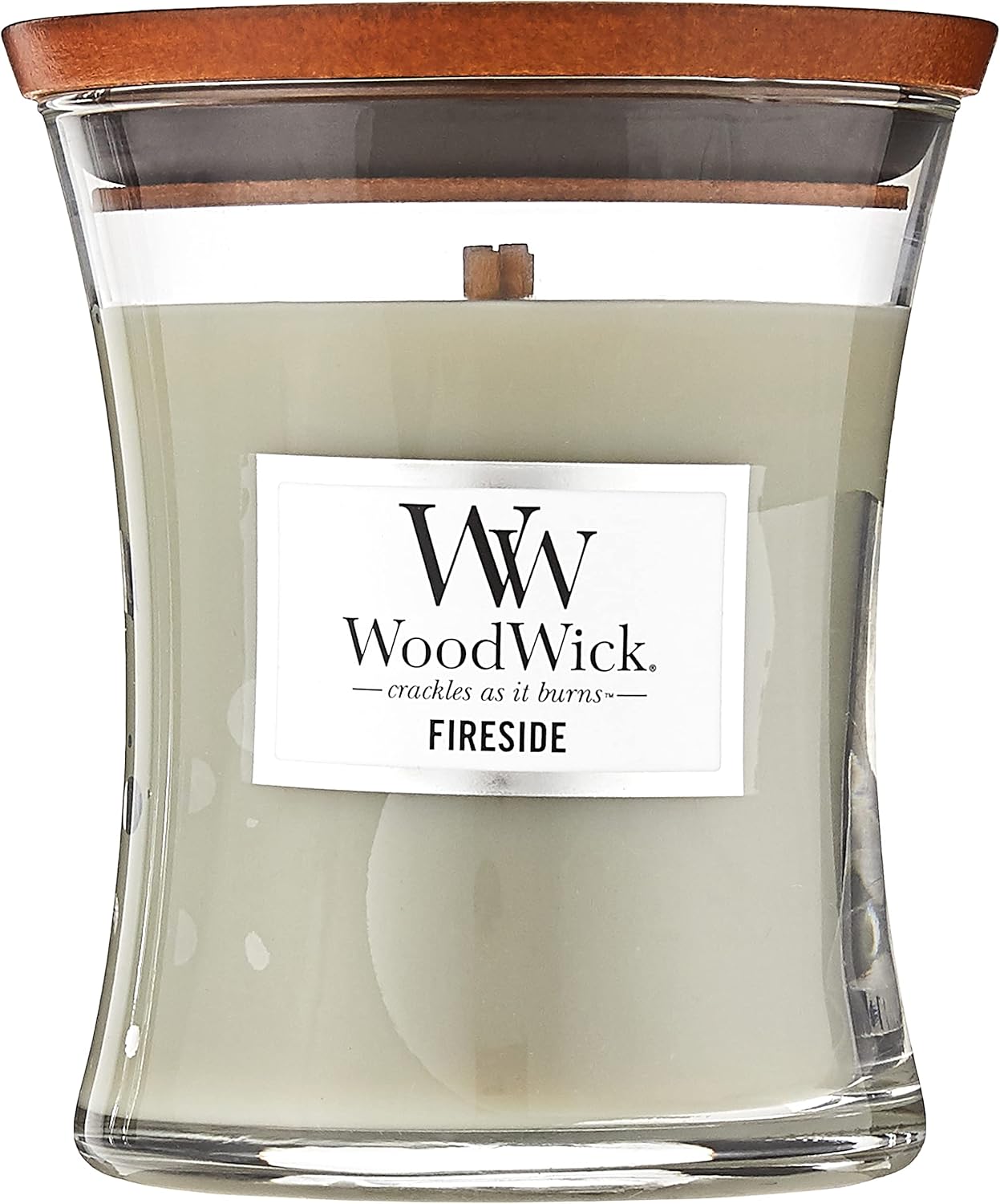WoodWick Vanilla Bean Medium Hourglass Candle, 9.7 oz.The decadence of authentic vanilla bean made more evocative with notes of pure sugar cane. Fill your curated home with the rich, nuanced scents and the distinctive, iconic look of our Hourglass Candle with a wooden lid. The Pluswick® Innovation wick enhances the sensory experience with a distinctive crackle and intriguing glow. A coveted gift for yourself or a friend.WoodWick Fireside Medium Hourglass Candle, 9.7 oz.Our signature fragrance balances the natural scents of amber, vetiver and musk to perfectly capture the essence of a cozy evening by a warm fire.