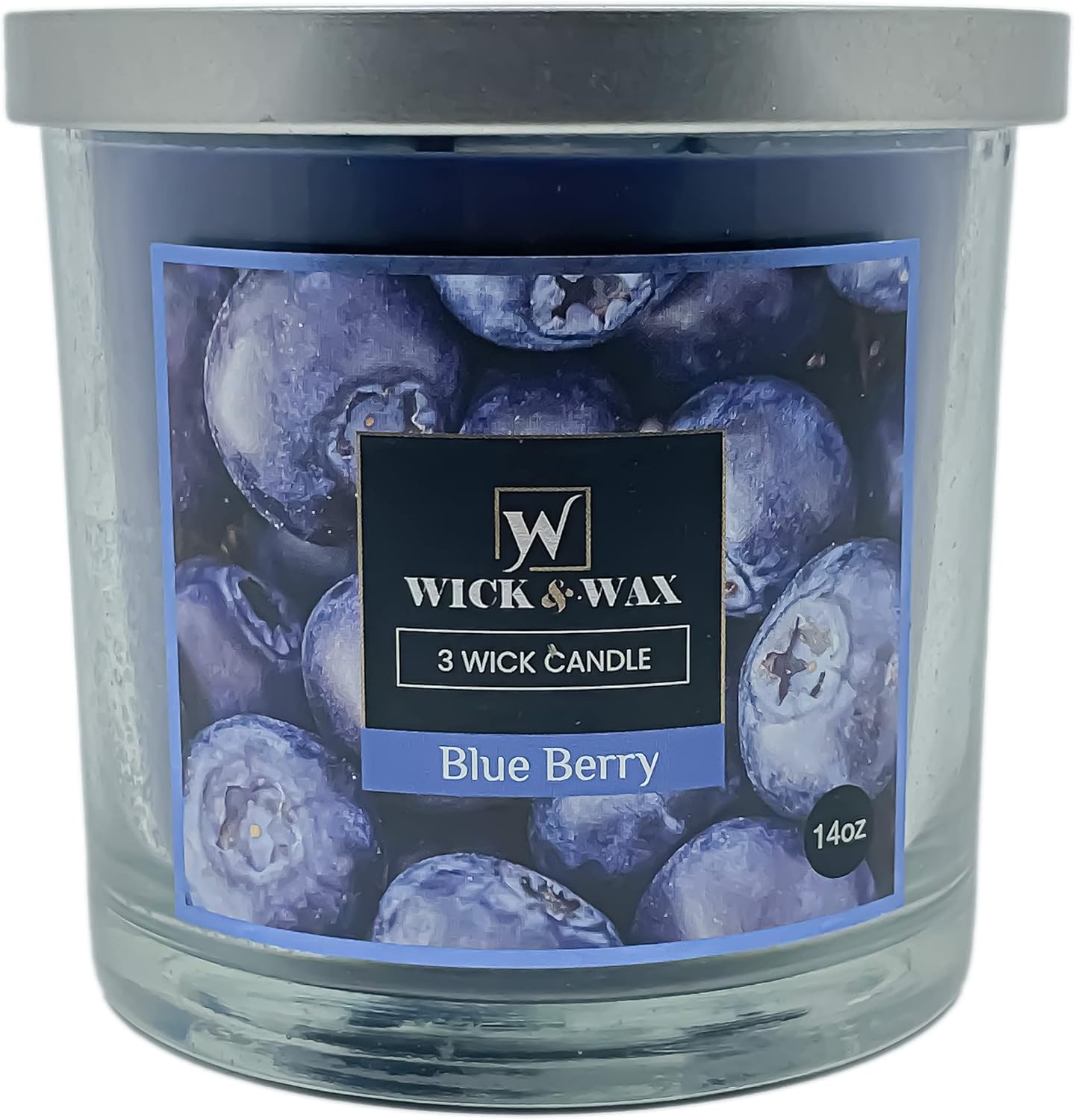 Lift your spirits with the refreshing, pleasant fragrance of the 14oz 3-Wick Round Base Glass Candle, This candle infuses your Surround with Blueberry scents