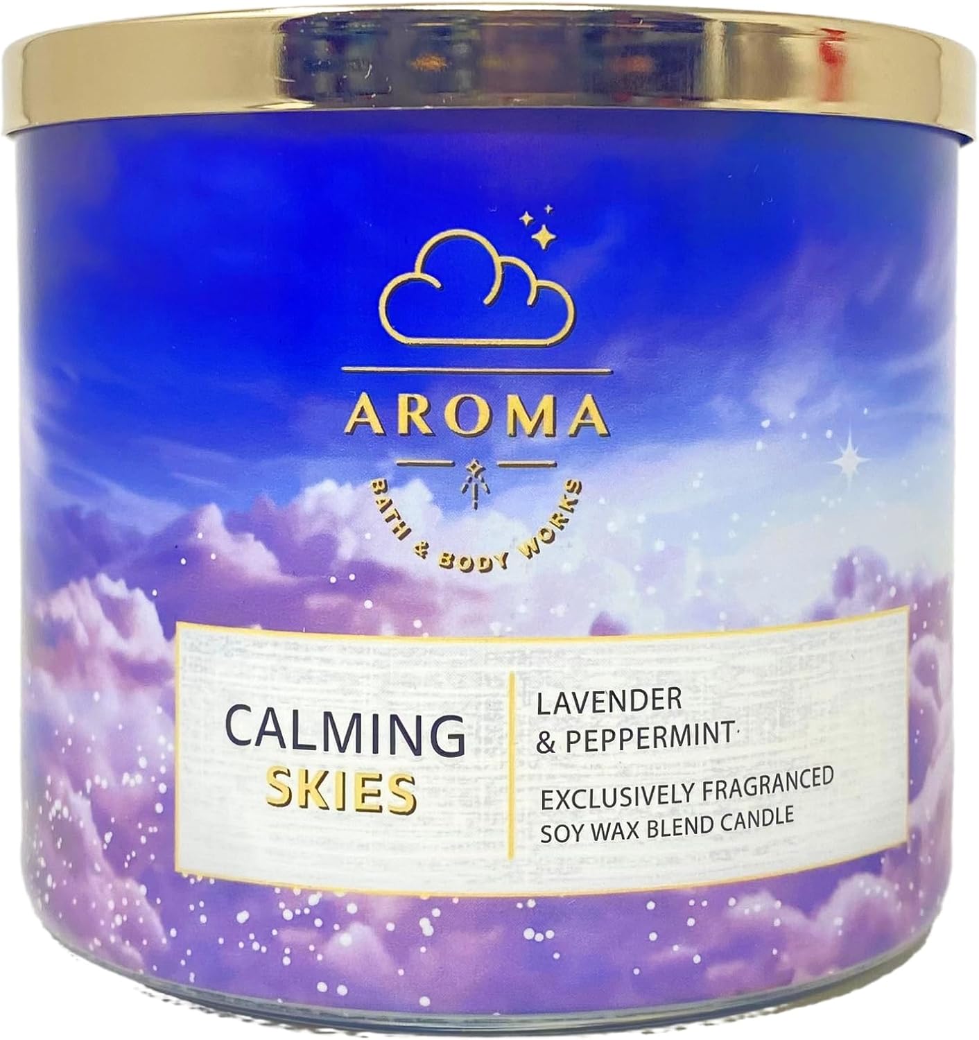 Bath & Body Works Calming Skies Lavender Peppermint 2 Piece 3-Wick Scented Candle Set with a 4 oz Marbela Lavender Dream Bar Soap. (Ingredients: Saponified Oils of: Olive Oil, Organic Virgin Coconut Oil, Cocoa Butter, Shea Butter, Castor Oil, Sweet Almond Oil, Dried Lavender, Fragrance, Vitamin E, Kaolin Clay, Mica Essential oils of Cedarwood Atlas, Lavender, Geranium).