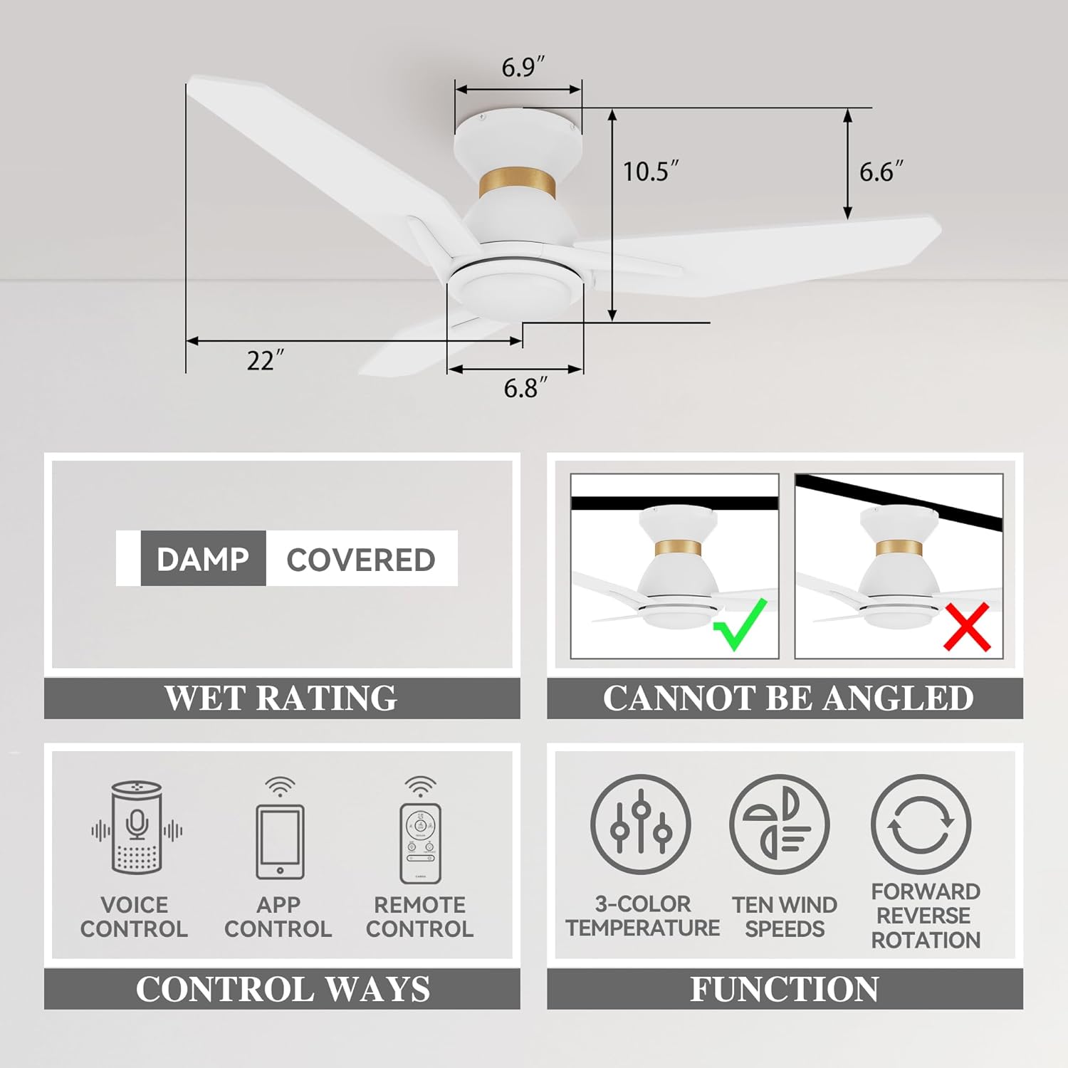 | Included Components | DC Motor, Pack of Screws, LED Kit, Fan Blades, 6-inch Downrod, Fan Blade Bracket |