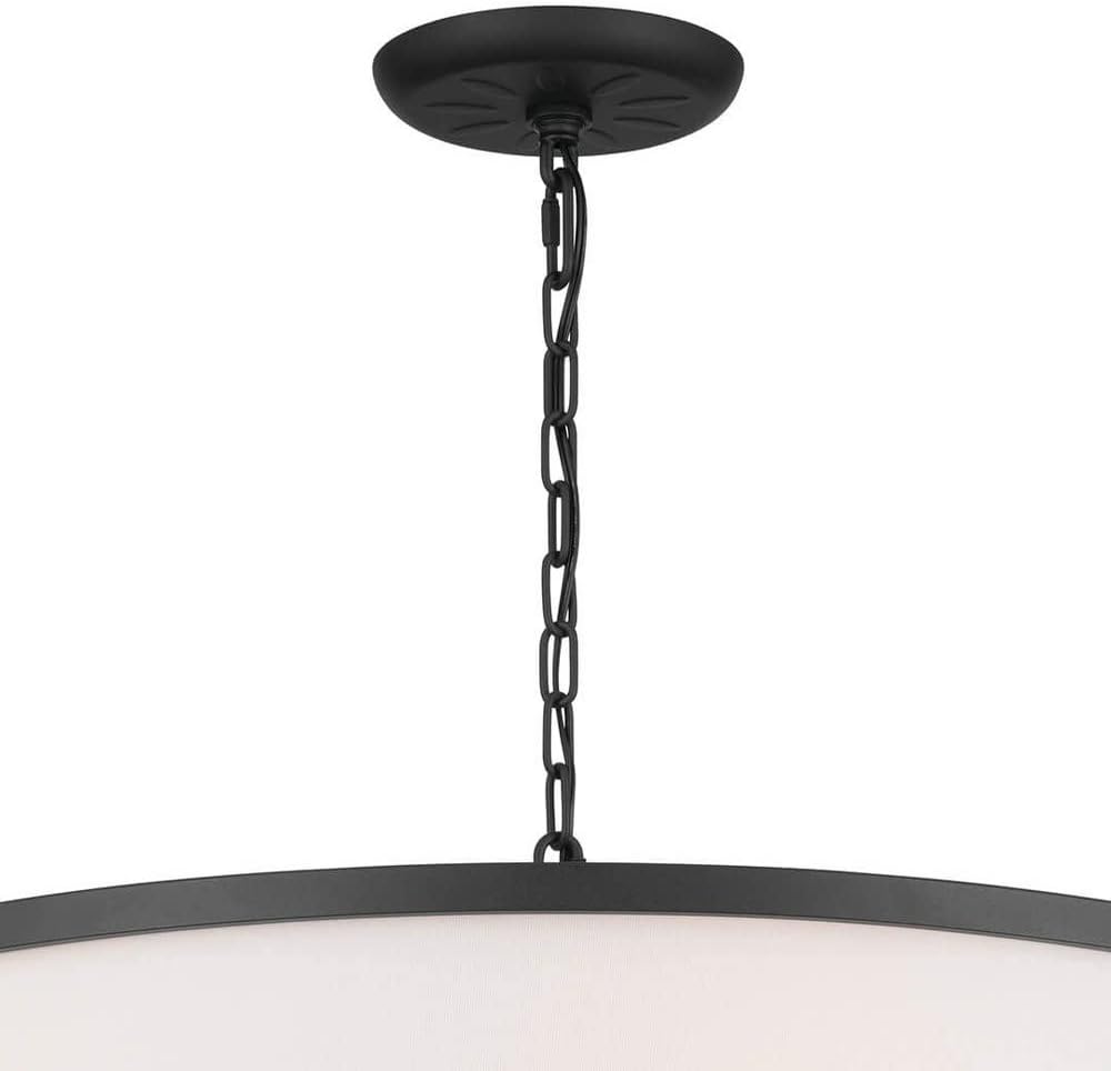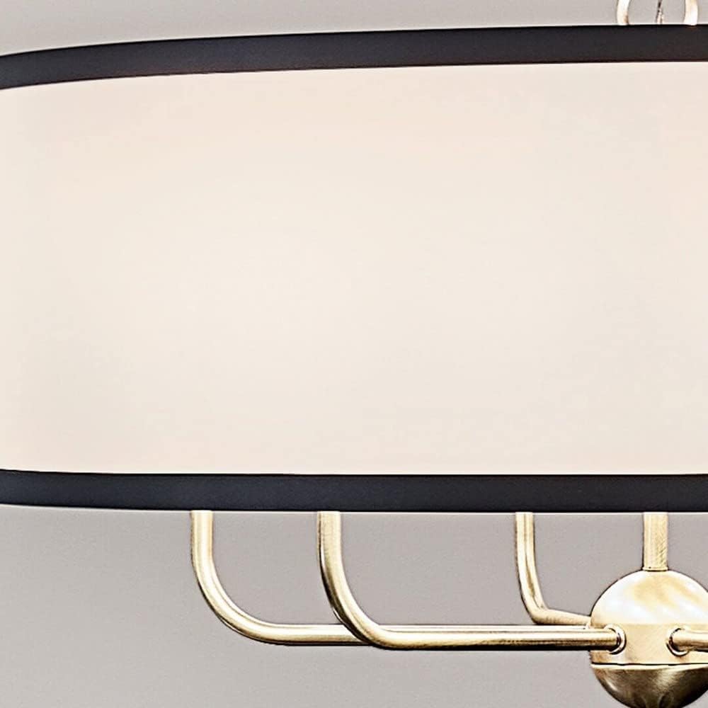 The Heddle 6 light chandelier creates a cozy, warm ambiance. Its soft fabric shade with a Textured Black trim effortlessly complements the Natural Brass finish. Just below the candle sleeve, you'll see a ribbed spherical piece and a light floral detail on its body. Its these delicate design details that elevate its vintage aesthetic.