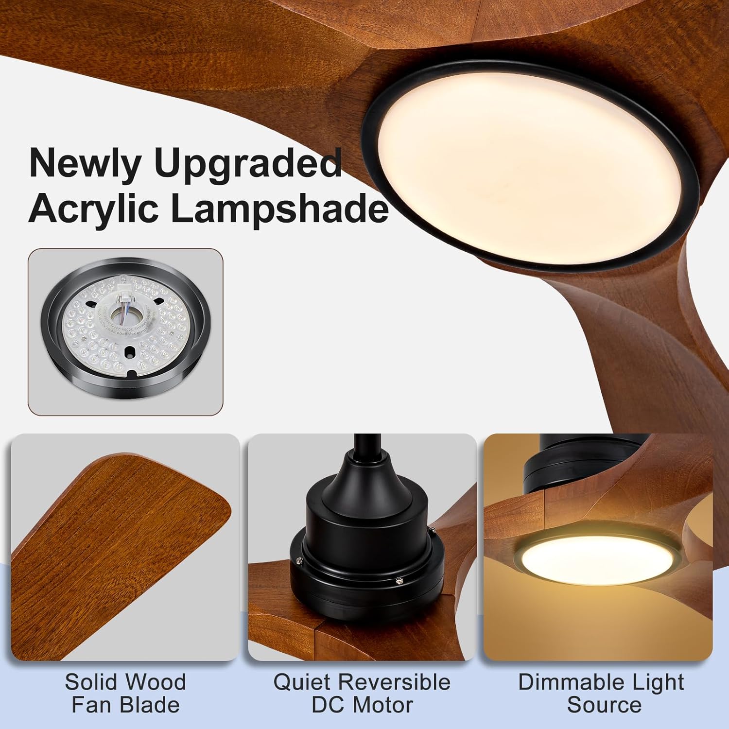 | Other Special Features of the Product | Dimmable, Reversible DC Motor, Solid Wood Fan Blades, Timer Setting |