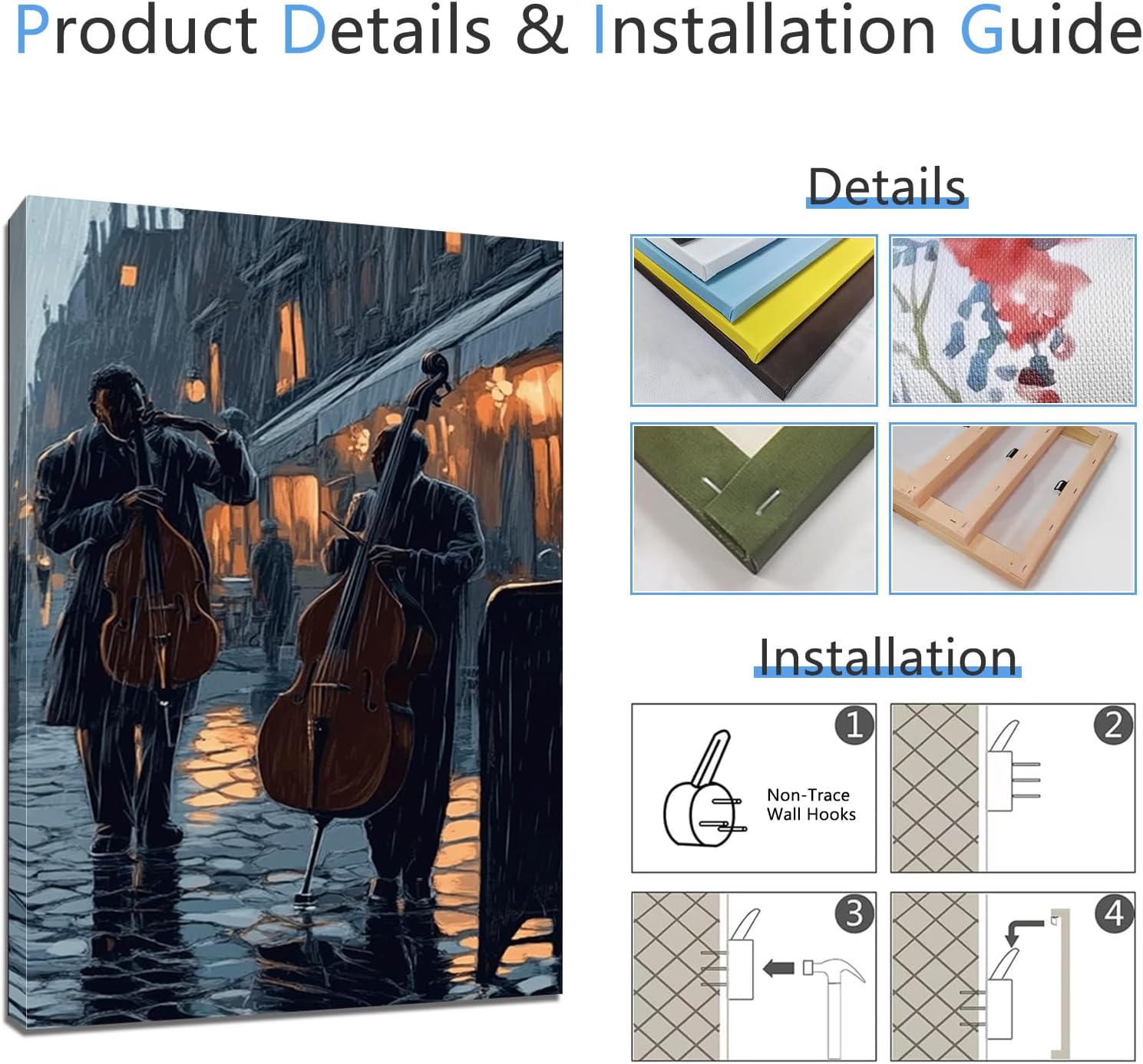 Orange Jazz Orchestra Music Painting Print, Abstract Jazz Musician Framed Canvas Wall Art, Saxophone Musical Picture, African American Art, Jazz Posters Framed Ready to Hang Specifications: Framed Type: Wrapped Canvas. Product Material: Wood framed and canvas print. African American Jazz Wall Art Size: 12x18in canvas wall art set of 3 16x24in canvas wall art set of 3 24x36in canvas wall art set of 3 Style: Music. Quantity: 3pieces Package Includes: 1x Music Pictures Wall Art. Care Instructions: Our music wall art are made of high-quality wood and printed on quality canvas to last for years to come. This means that most of my products are UV-resistant and eco-friendly! Clean with adamp cloth. Tips: 1.The color may exist a slight differences due to different screen displays. 2.Manual measurement, please allow slight errors in size. 3.Please measure your wall dimensions before purchasing to help you choose the right size decorations.