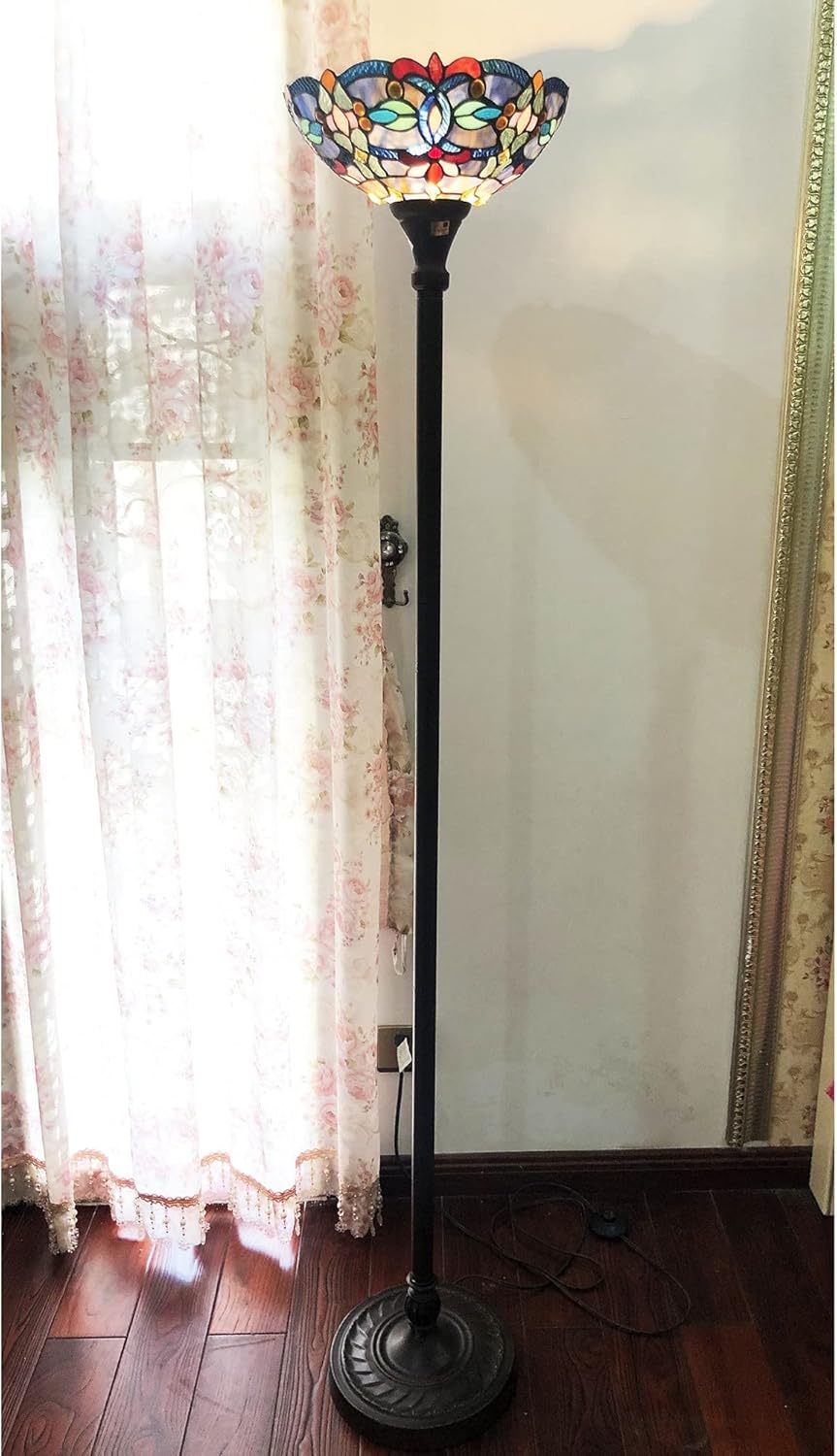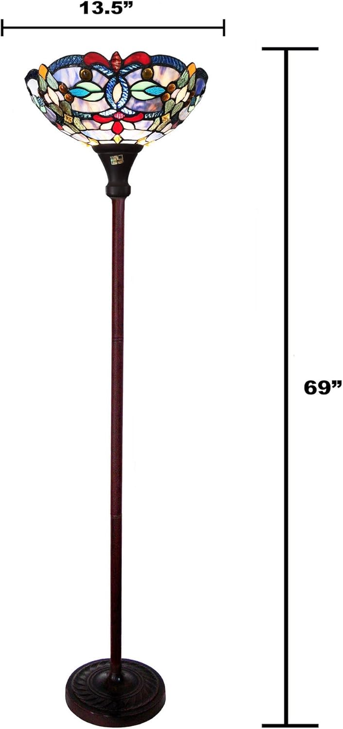 Benjara CH1T153BV14-TF1 Vivian Tiffany-Style Victorian Stained Glass Torchiere Floor Lamp 69" Height, Antique Bronze
