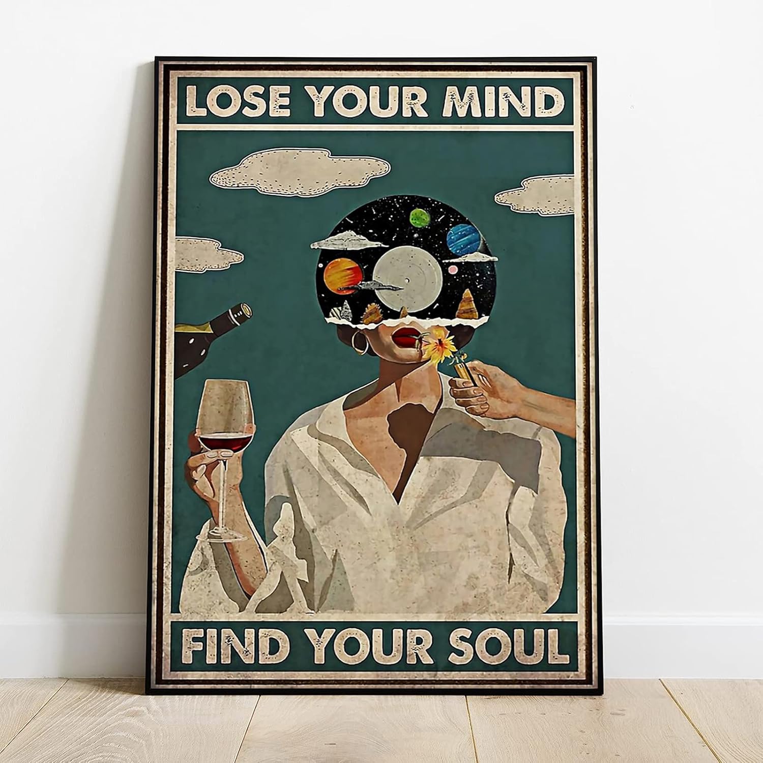 Framed Art Vintage Lose Your Mind Find Your Soul Poster Mental Health Quote Canvas Wall Art Posters Cool Unique Music Girl Print Painting Abstract Wall Decorfor Bed Room Bathroom 12x16in
