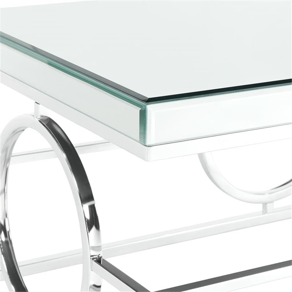 The Picket House Furnishings Katie Rectangle Mirrored Coffee Table will have you feeling like a queen in your living room! This accent table features a mirrored table top design, taking glam style to the next level. The table base features an intricate design, one that you will admire more and more every day. The sleek, chrome finish is going to pair well with any existing, glamorous decor you might already have. Add this ultra glam accent table to your home today for a look that will always be in style.Features:- Rectangular Shape- Mirrored Table Top- Sleek, Chrome Metal Base- Intricate Table Base Design- Modern Glam Style