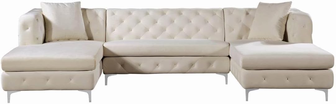 | Item Type Name | 664Cream-Sectional Modern | Contemporary Velvet Upholstered 3 Piece Sectional with Luxurious Deep Button Tufting in a Rich Chrome Finish |