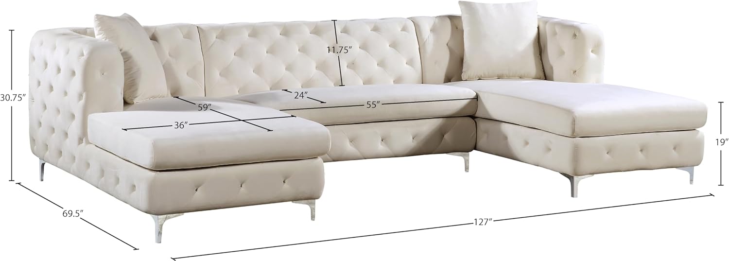 | Additional Features | Deep Tufting, Double Chaise Sectional, Overall Product Dimensions: 127" W x 69.5" D x 30.75" H |
