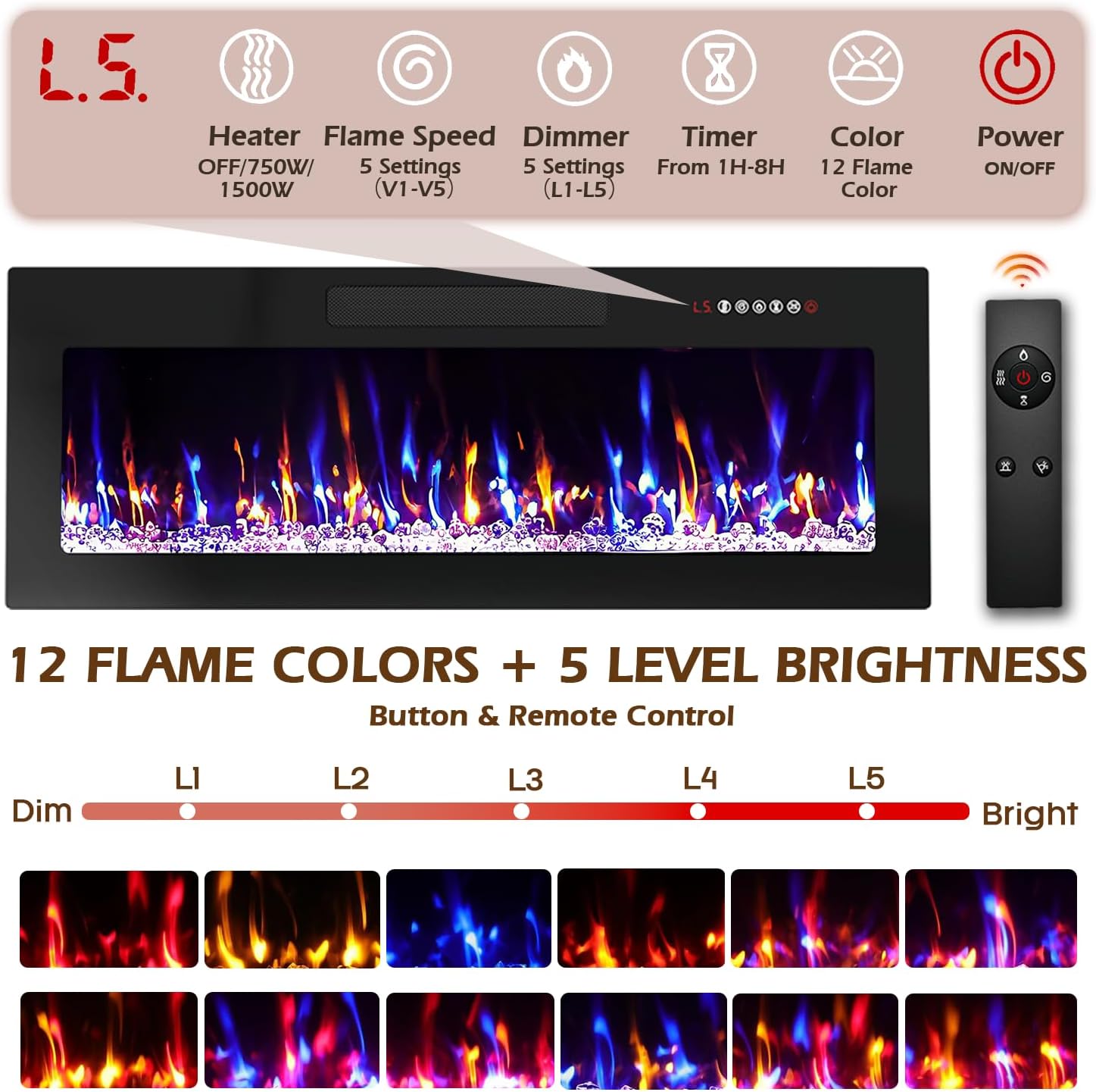 | Additional Features | Adjustable Flame, Dimmer, Led Flame, Multicolor Flame, Overheat Protection |
