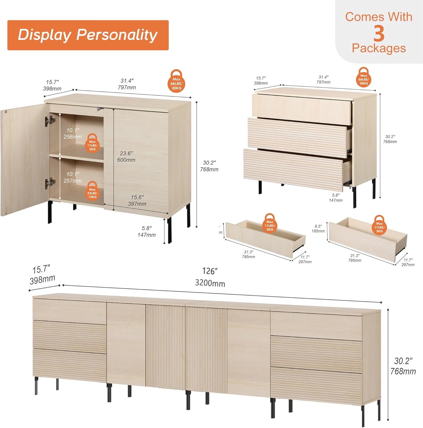 | Size | 126 inches (W) x 15.7 inches (D) x 30.2 inches (H) |