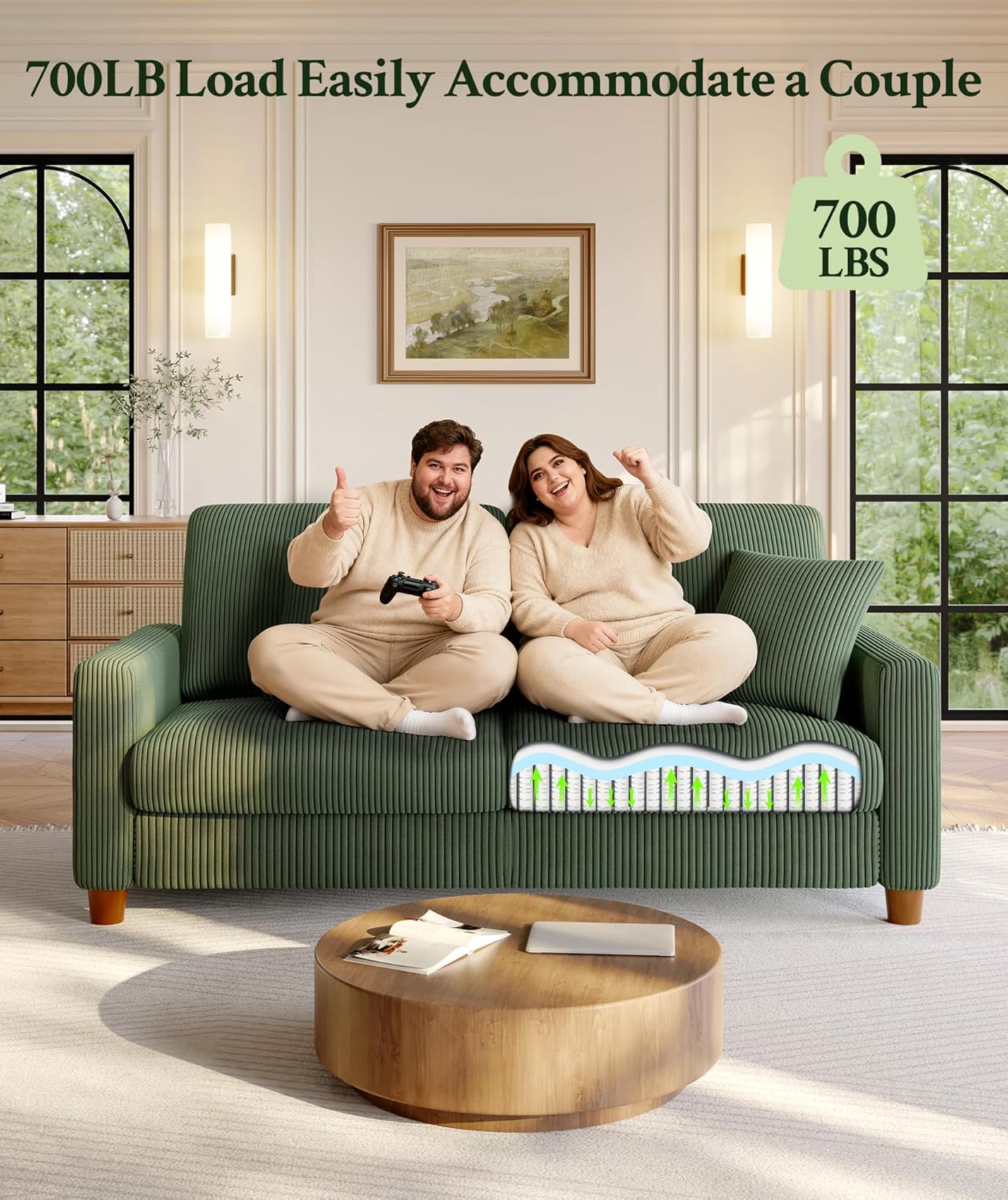 | Material Features | Resilient corduroy Fleece, Spring-supported Seat Cushion, Sturdy Solid Wood Frame |