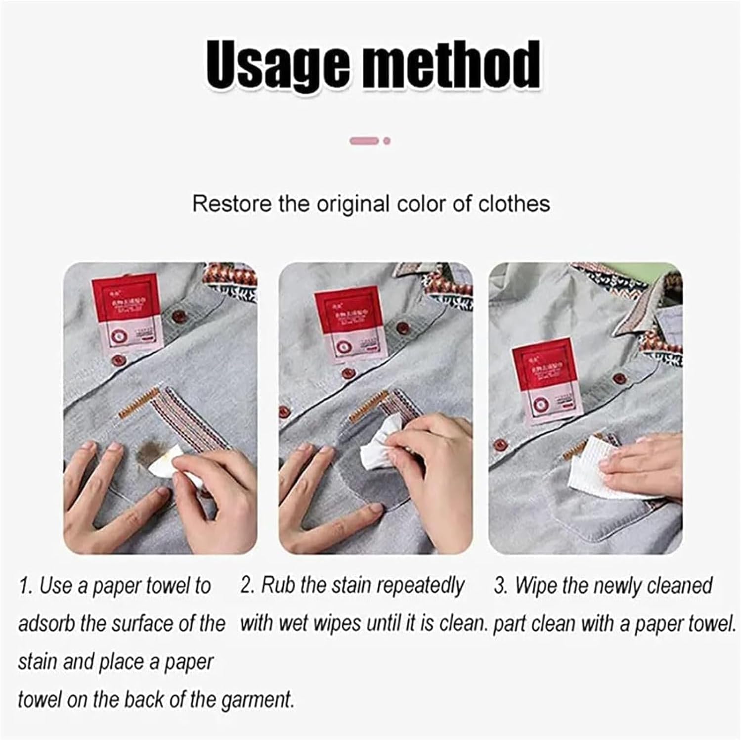 Features: 1. Clothes Stain Remover Cleaner, Professional Stain Removal Formula, They Are Suitable For Removing Grease And Coffee Stains From Clothes. 2. Our Mini Stain Removal Wipes Are Made With Universal Detergents And Are Effective On Most Fresh And Dry Stains And Are Suitable For Most Fabrics, Organic Or Inorganic Stains. 3. Each Travel Stain Remover Is Individually Packaged For Easy Portability, You Can Remove The Wipe And Cover It To Soak Up The Stain, Then Rinse And Watch The Stain Disappear. 4. This On The Go Clothing Stain Rtemoval Wipes Is The Best Stain Remover To Have Handy When You'Re At A Party, Wedding, Or Even A Night Out With Your Friends. 5. This Stain Remover Can Be Your Go-To Friend That Will Help You When Faced With Spilling Scenes Or Dealing With Embarrassing Moments. Specifications: Material: Non-Woven Fabric Color: White Wipe Size: Approximately 5.5 X 5.5 Inches/14 X 14 Cm Shelf Life: 3 Years Packaging: 20 Pieces/Pack Package Includes: 5/10PCS Portable Emergency Stain Removal Wet Wipes Notes: 1. Due To The Difference In Light And Display, The Colour Of The Product Is Subject To The Actual Product. 2. Due To Manual Measurement, There Will Be A 0-3 Cm Error In The Product Size, Please Understand.