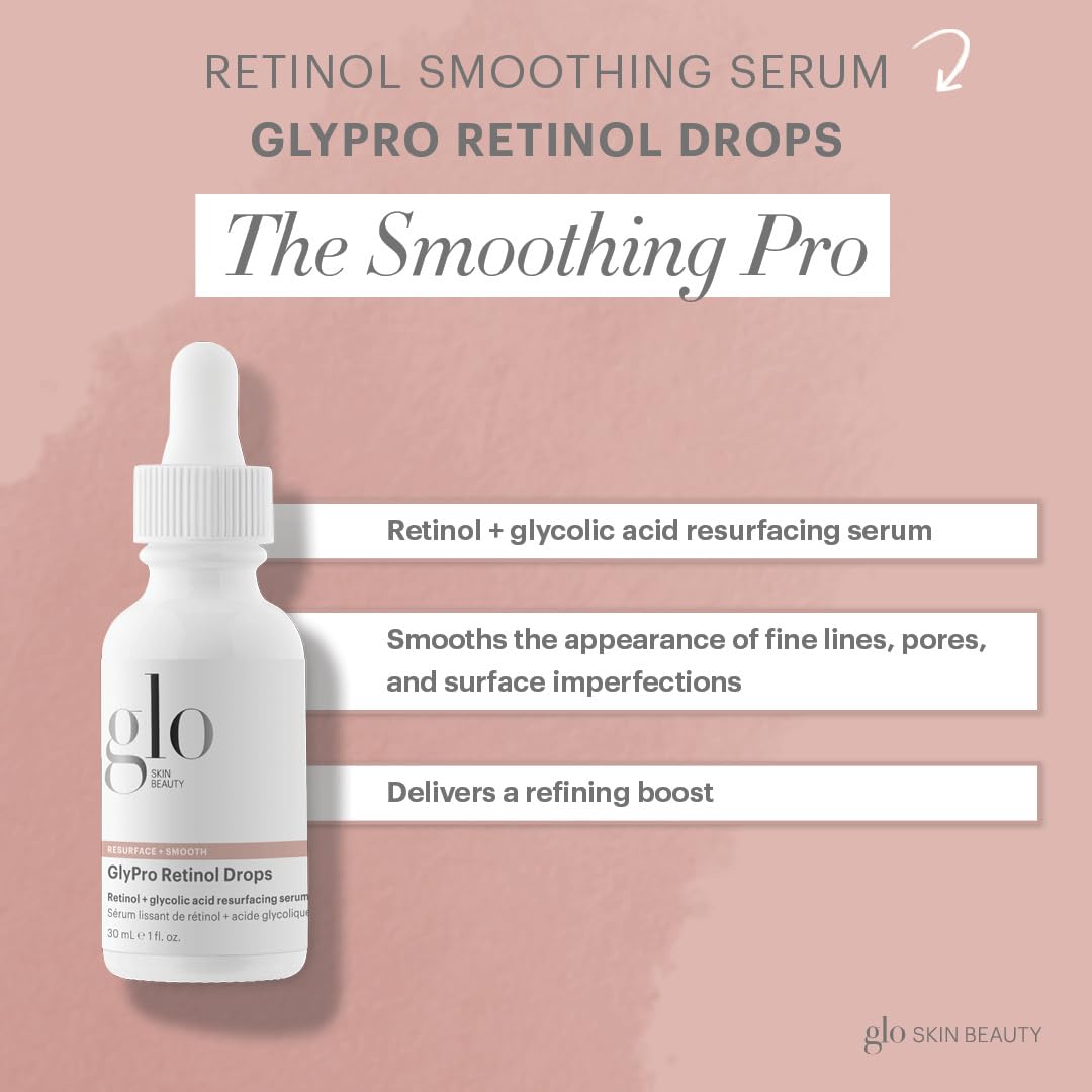 Product Description Resurfacing and exfoliating on the surface, while promoting cell turnover from within, GlyPro Retinol Drops take your skin smoothing treatments to the next level. Targeting texture concerns including pigmentation, pore size, and the appearance of fine lines and wrinkles, this potent blend of retinol, glycolic acid, along with gallic acid and botanical extracts, strengthen skin, plumping, hydrating and boosting overall brightness. Perfect for all skin types except sensitive. | Key Benefits: Smoothing: Pro-level exfoliation visibly improves complexion clarity, treating surface imperfections and pigmentation issues. Renewing: Reducing the appearance of fine lines and pores, it helps strengthen and plump skin, improving elasticity. Brightening: A brightening complex including botanical ingredients, hydrates and boosts radiance. Brand Story Skincare can be serious and seriously fun. We have the professional solutions for any skin concern, next-level essentials for any skin type and at-home treatments designed to seriously upgrade your selfcare ritual