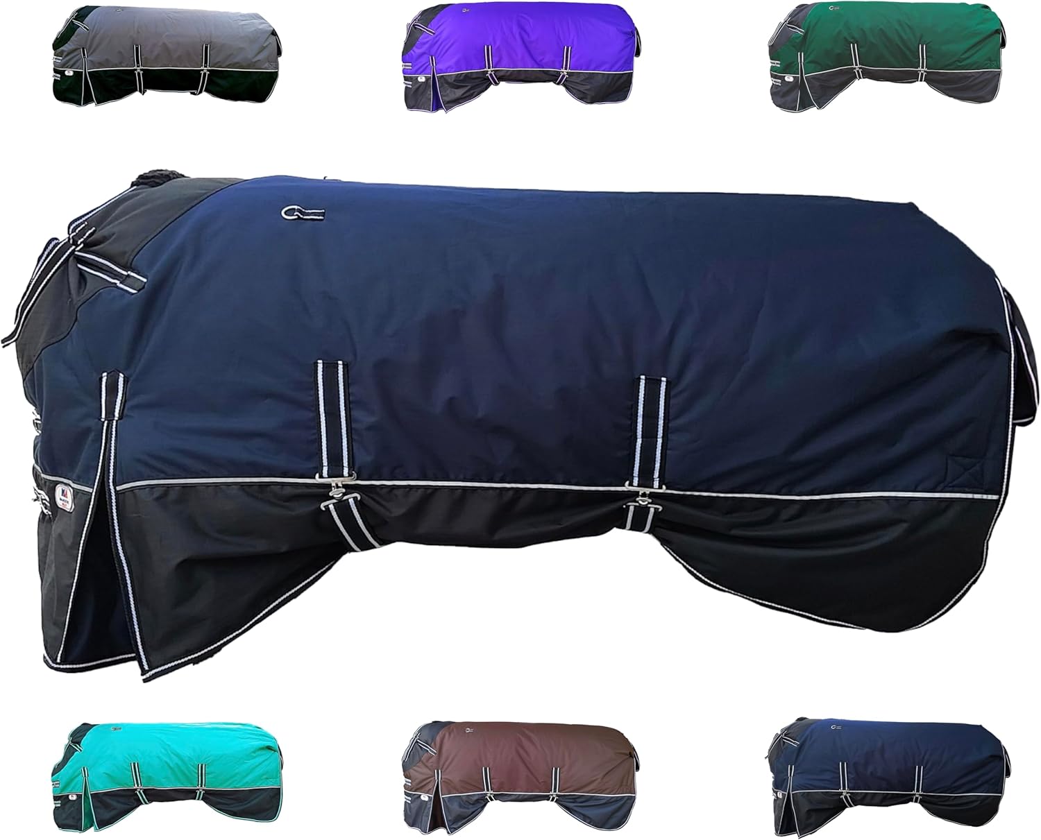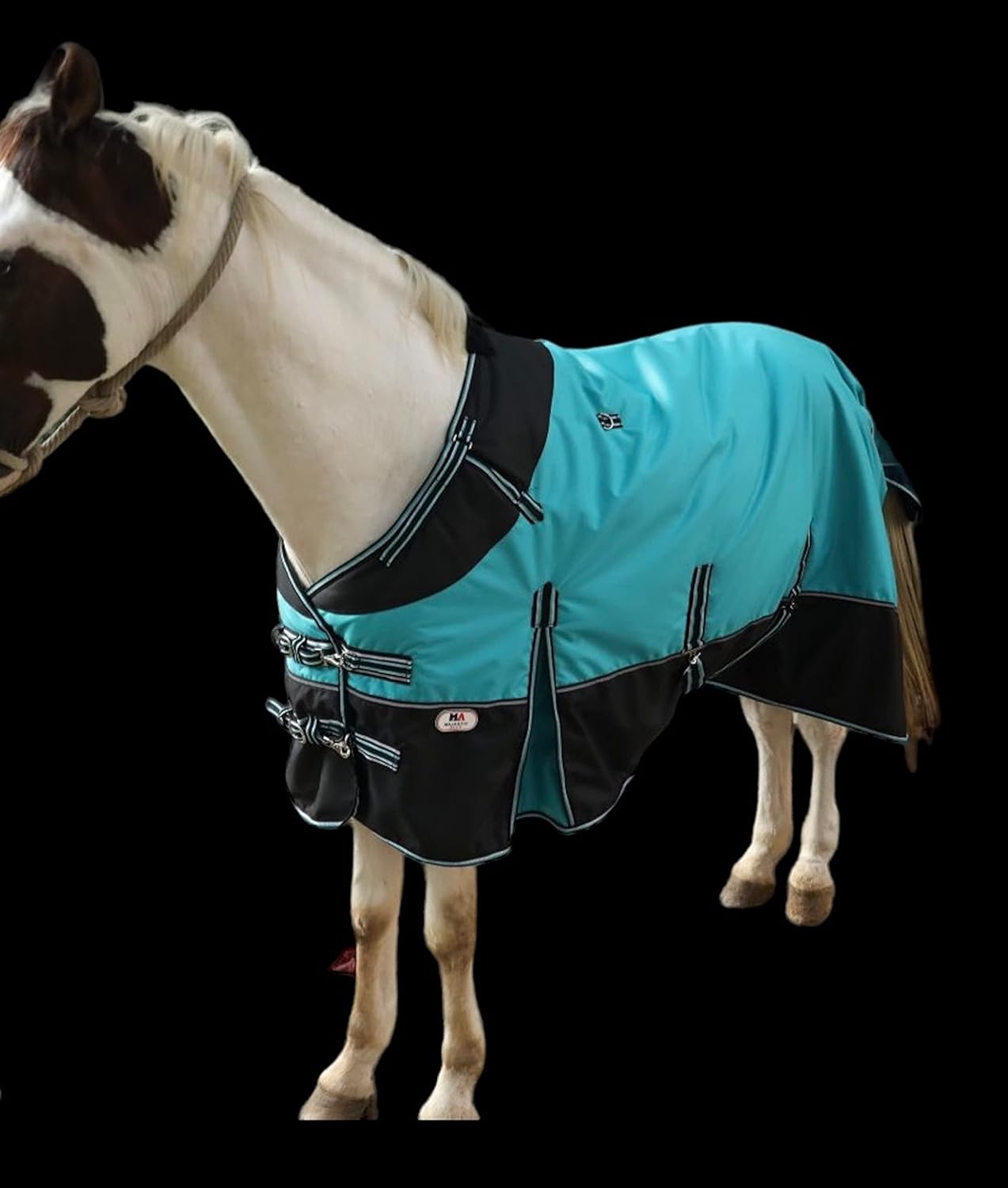 Keep Your Horse Warmer, Dryer, and More Comfortable with Majestic Ally When you want to turn your horse out to pasture in cooler weather you want to cover them up so they can stay warm as they graze and walk around. We created this professional-grade horse turnout blanket as a way to protect them quickly and easily from sudden rain showers, keeping them warm when stopping on trail rides to camp, or just ensuring they’re better covered when they’re outside during the colder months. Designed with 600D ripstop material that’s waterproof, breathable, and lightweight our turnout blanket ensures your horse is ready to enjoy the outdoors but stay more comfortable doing it. Product Details: Professional Horse Turnout Blanket Water-Resistant 600D Ripstop Material Lightweight and Breathable (250 GSM Filling) Adjustable Neck and Crisscross Surcingle Closure Available in Multiple Sizes (See Above) Available in Dark Gray Black or Turquoise Black