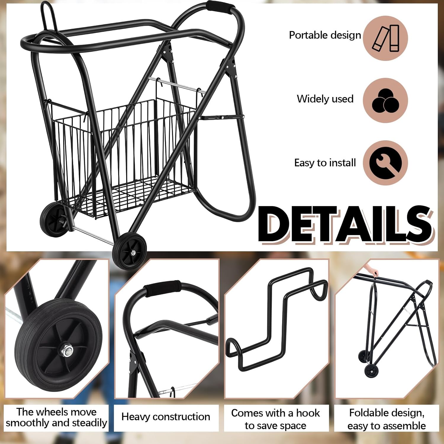 Features: Versatile storage and utility: Our saddle cart offers ample storage for a ride out. The classic hook shape facilitates easy hanging on doors, partitions, fences and more. Suitable for garages, barns, porches, utility rooms, cloakrooms, etc. Multi-Purpose use: The cart is not just for the saddle. Its multi-functional design allows you to store and transport your other harnesses. This centralized storage and transportation system brings convenience to your fingertips and reduces manual carrying stress. Specifications: Material: iron Color: black Size: Cart: 33.86 x 32.28 x 17.32 inches Folded size: 39.37 x 6.69 x 5.51 inches Basket: 17.72 x 11.02 x 8.27 inches Hook: 5.51 x 4.13 x 1.57 inches Package includes: 1 x Horse tack cart with wheels Notes: Manual measurement, please allow slight errors on size. The color may exist a slight difference due to different screen displays.