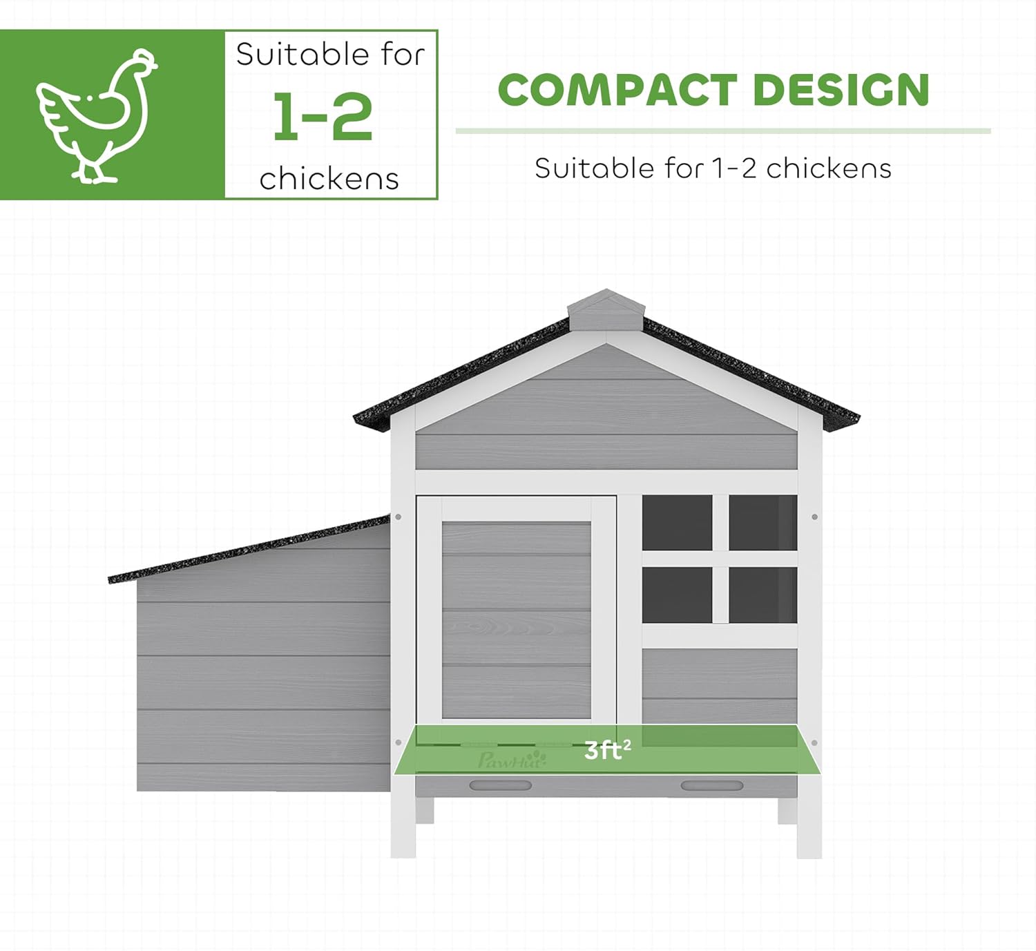 • Compact Design: Measuring 36.2" x 25.2" x 27.2", this chicken coop is suitable for small gardens, comfortably housing 1-2 chickens, rabbits, or ducks. The dedicated nesting box features an openable roof, allowing you to collect fresh eggs effortlessly