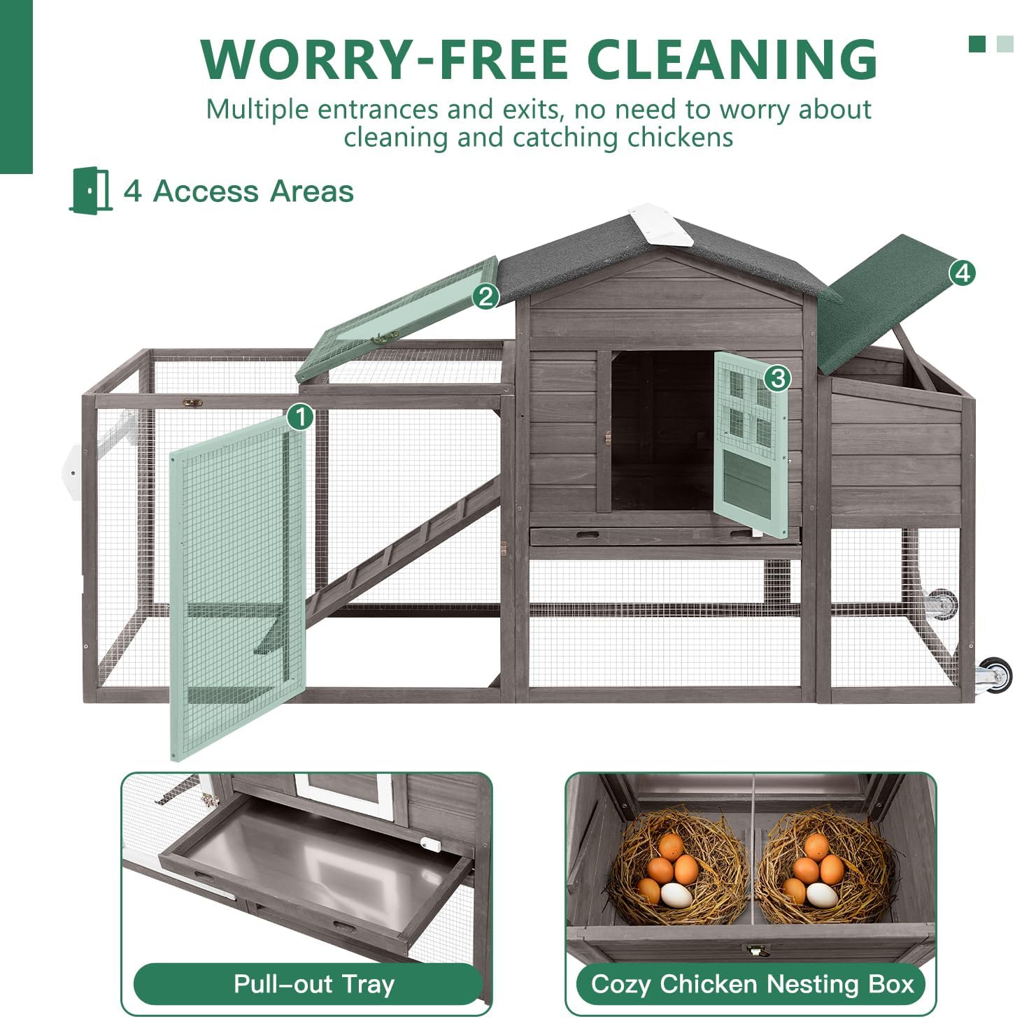 | Included Components | Anti Ramp, Lockable Caster Wheels, Nesting Box, Removable Tray, Sleeping Perches |