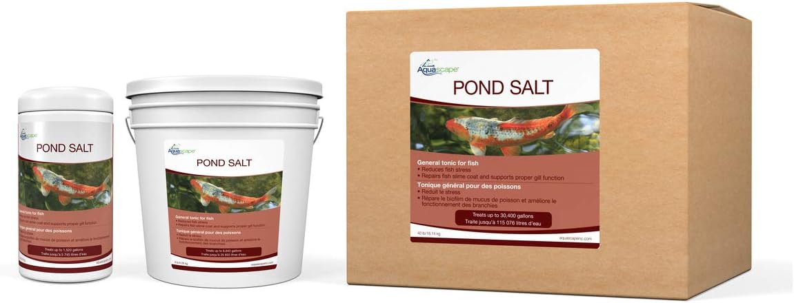 Aquascape Pond Salt provides a wide variety of benefits for ponds and pond fish, acting as a treatment and preventative measure. Our Pond Salt helps to reduce the effects of elevated nitrite levels that become toxic to pond fish. It also helps restore natural electrolytes, allowing proper gill function when pond fish are under stress. This non-iodized salt also repairs and promotes a natural slime coat, effectively helping to prevent disease. Each scoop will treat 190 gallons of water and the entire container treats 30,400 gallons total.
