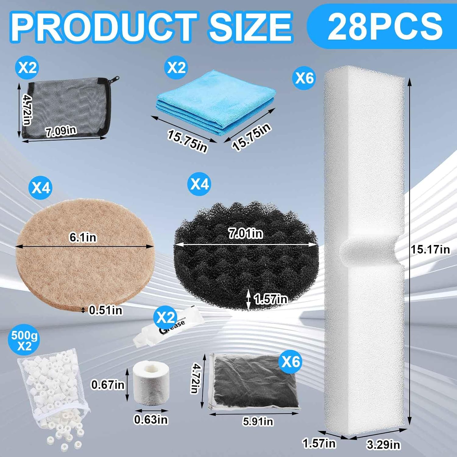 | Included Components | 2 x Aquarium towel, 2 x Bag media, 2 x Filter bag, 2 x Silicone lube, 4 x Phosphate remover pad, 4 x Silicone lube, 6 x Foam block |