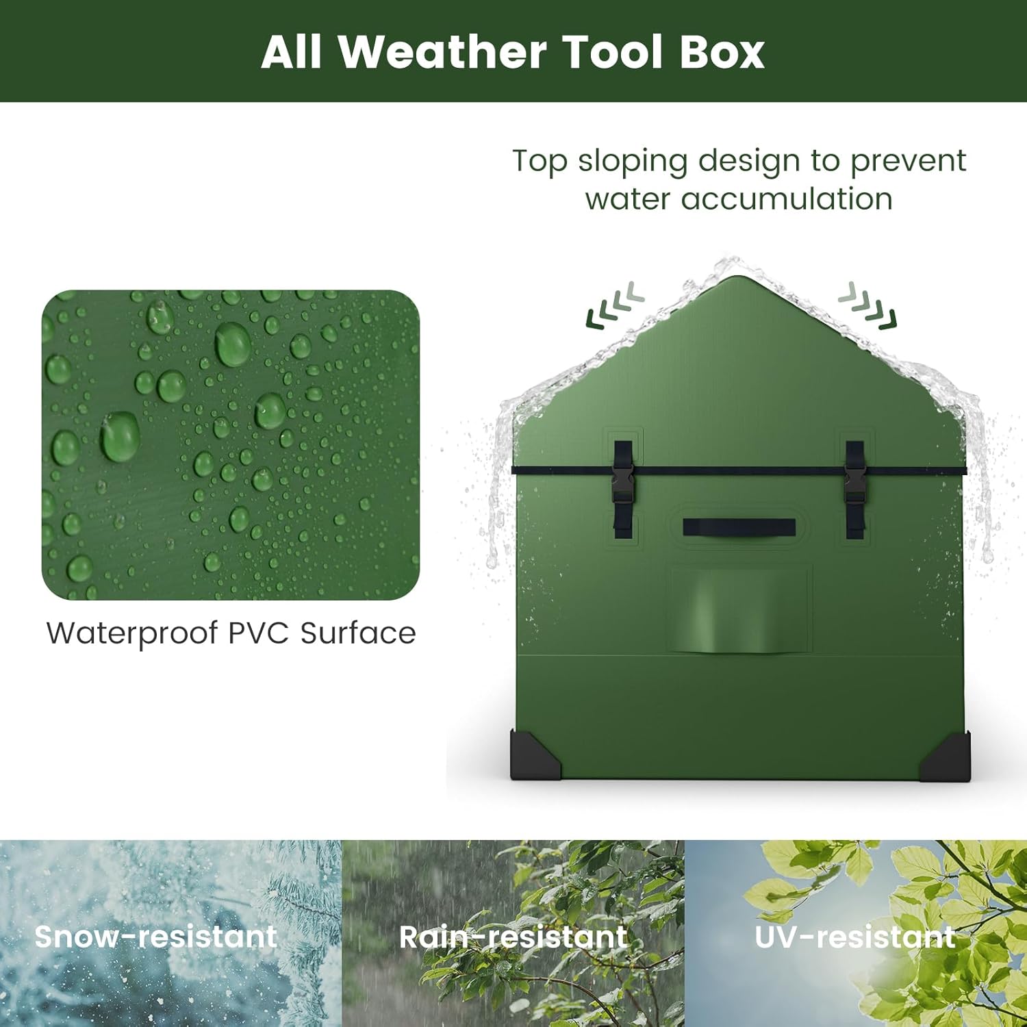 Are you looking for a durable and spacious outdoor storage solution that can effortlessly hold all your essentials? Your search ends with our 174 gallon large capacity storage box. Boasting a weather-resistant design, it is snow-resistant, rain-resistant, and sun proof, and the innovative top sloping design effectively prevents water accumulation, ensuring your items stay dry and protected. Besides, our deck box can be widely used in various settings such as pools, patios, and camping trips. With detailed instructions and no tools required for assembly, setting up your outdoor tool box is easy. Plus, it also features reinforced connectors and corner protectors for added stability.