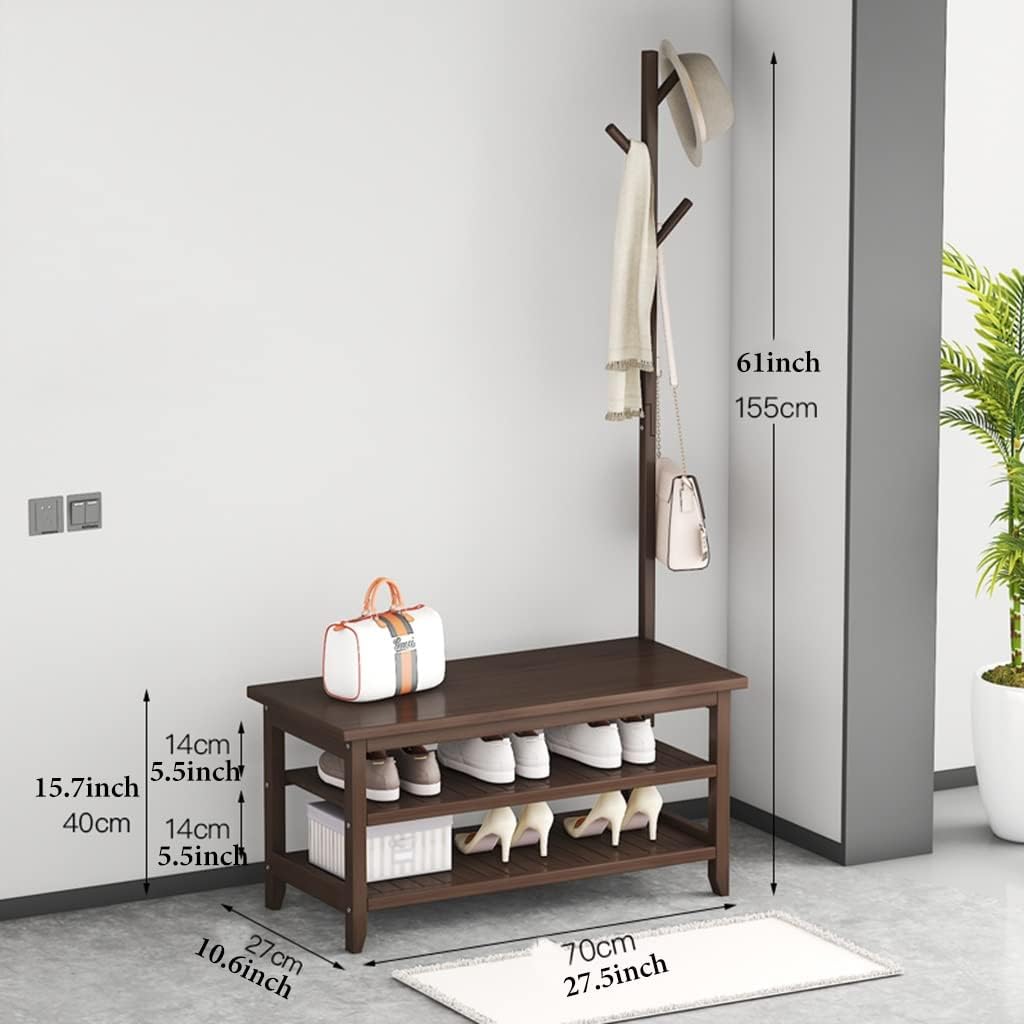 The minimalist yet functional coat tree integrates hallstand, shoe bench and shoe rack. 3-tier shoe rack and 3 hooks add spatial beauty to your home.【Product specification】--Color: Brown--Product material: wood--Product size: 50*27*155 cm/19.6*10.6*61 inch70*27*155 cm/27.5*10.6*61 inch80*27*155 cm/31.5*10.6*61 inch100*27*155 cm/39*10.6*61 inch--Package Contents:1 x Coat Rack Product Use: Bathroom Hanging Towels, Coats, Hats, Handbags, Keys, Belts, Hats, Umbrellas, Wallets, Necklaces, Etc.Suitable For: Birthday, Travel Commemoration, Graduation Ceremony, Housewarming, Party, Visit, Etc.Applicable Scene: Hallway, Porch, Mud Room, Bathroom, Kitchen, Laundry and Utility Room, Garage, Office, Front Door, Bedroom, Etc.【Tips】:★ We only sell coat rack, other items are props.★ All data is measured by hand with a slight error.★ Due to physical factors such as light, camera color and lighting, there may be subtle color differences.