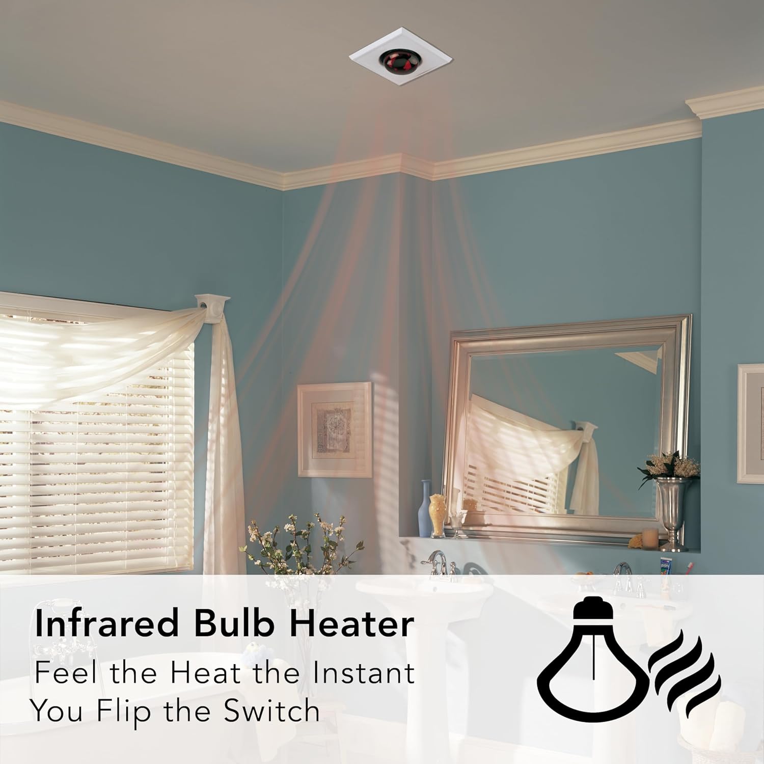 Keep your bathroom warm and clear with the stylish Broan® 70 CFM Exhaust Fan with Infrared Bulb Heater. This versatile fixture features a fan and heater that can work separately or together for convenience. This white fan also features polymeric dampers to help prevent back drafts and eliminate mechanical noise.