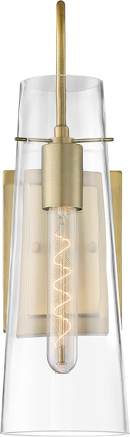 The crystal clear, conical-shaped glass shade of the Alondra appears to float around the single T9 light source. This provides a crisp appearance that is complemented by the Vintage Brass finish. The 17.25 inches height incorporates the glass, which is suspended by a three-point mount that extends from a delicate shepherd's hook.