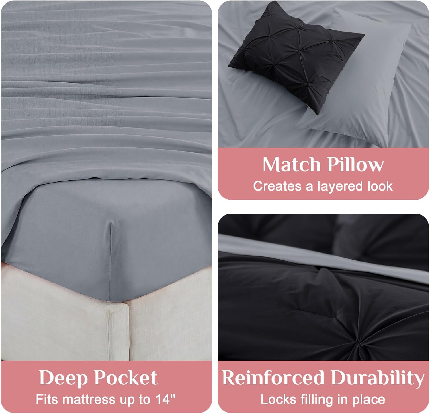 | Included Components | 1 Comforter (88" x 88"), 1 Fitted Sheet (60" x 80" + 14" deep), 1 Flat Sheet (90" x 102"), 2 Pillowcases (20" x 30"), 2 Pillow Shams (20" x 26" + 2" edge) |