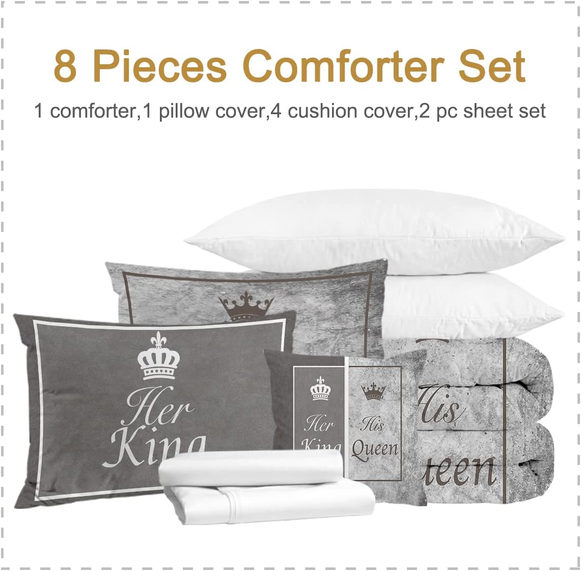 Package: Twin Size: 1 Comforter: 66"x90"; 2 Pillow shams: 20"x26"; 1 Flat sheet: 66"x96"; 1 Fitted sheet: 39"X 75"; 2 Pillow Cases: 20"x30"; 1 Decor pillow cover: 18"x18" Full Size: 1 Comforter: 80"x90"; 2 Pillow shams: 20"x26"; 1 Flat sheet: 81"x96"; 1 Fitted sheet: 54"x75"; 2 Pillow Cases: 20"x30"; 1 Decor pillow cover: 18"x18" Queen Size: 1 Comforter: 90"x90"; 2 Pillow shams: 20"x36"; 1 Flat sheet: 90"x102"; 1 Fitted sheet: 60"x80"; 2 Pillow Cases: 20"x36"; 1 Decor pillow cover: 18"x18" King Size: 1 Comforter: 104"x90"; 2 Pillow shams: 20"x36"; 1 Flat sheet: 108"x102"; 1 Fitted sheet: 78"x80"; 2 Pillow Cases: 20"x36"; 1 Decor pillow cover: 18"x18" Features: Easy To Wash This 8 piece bedding sets for boys can be machine or hand washed without color discoloration or shrinkage. Use like new after washing. Perfect As A Gift Ideal for those girls and boys, this 8 piece bedding can be gifted to friends and family on Christmas, New Year, Birthdays, or any other celebration. Extra Comfort Our 8 piece bed set is made of premium quality material for supreme and luxurious comfort with excellent workmanship to guarantee a soft and comfortable best night's sleep."