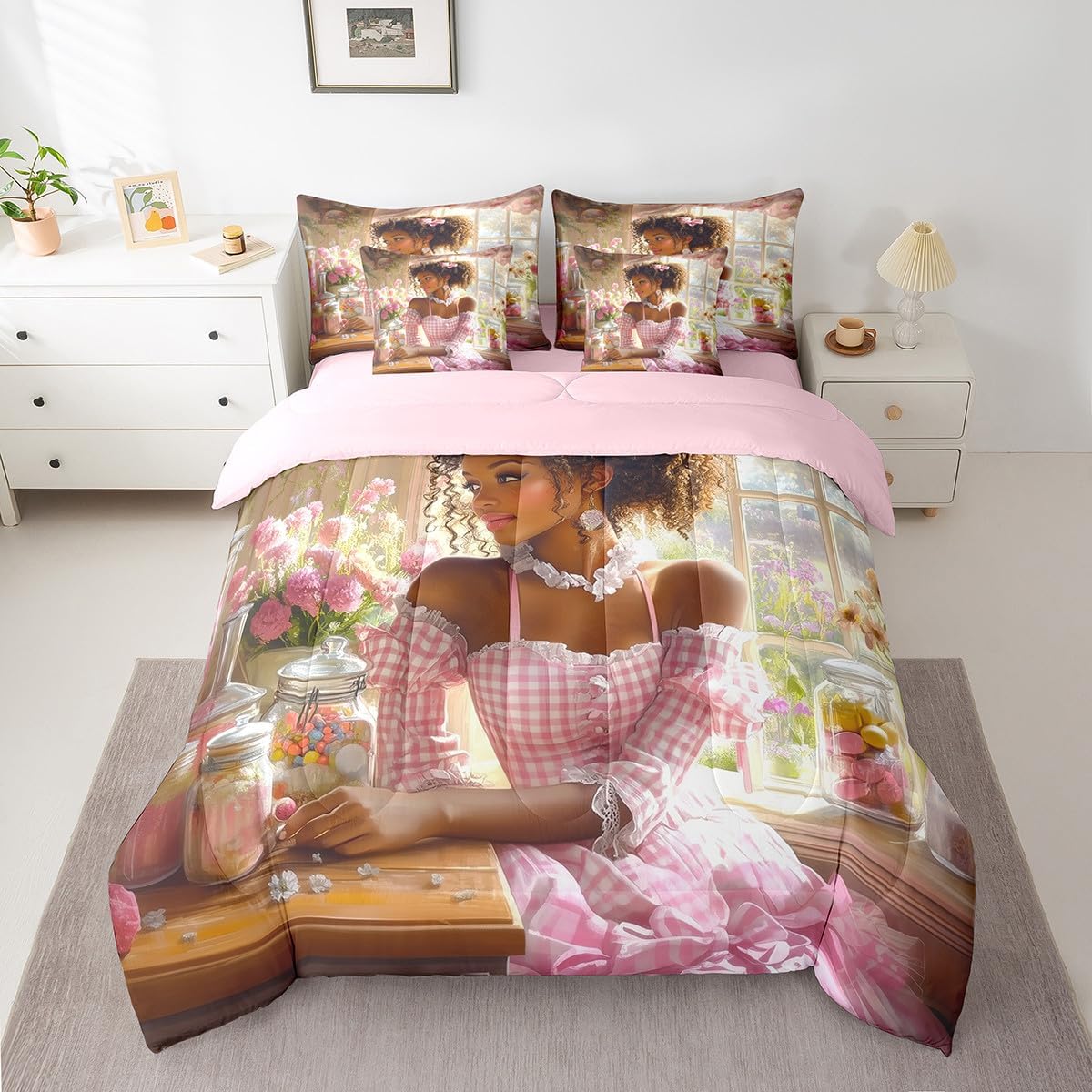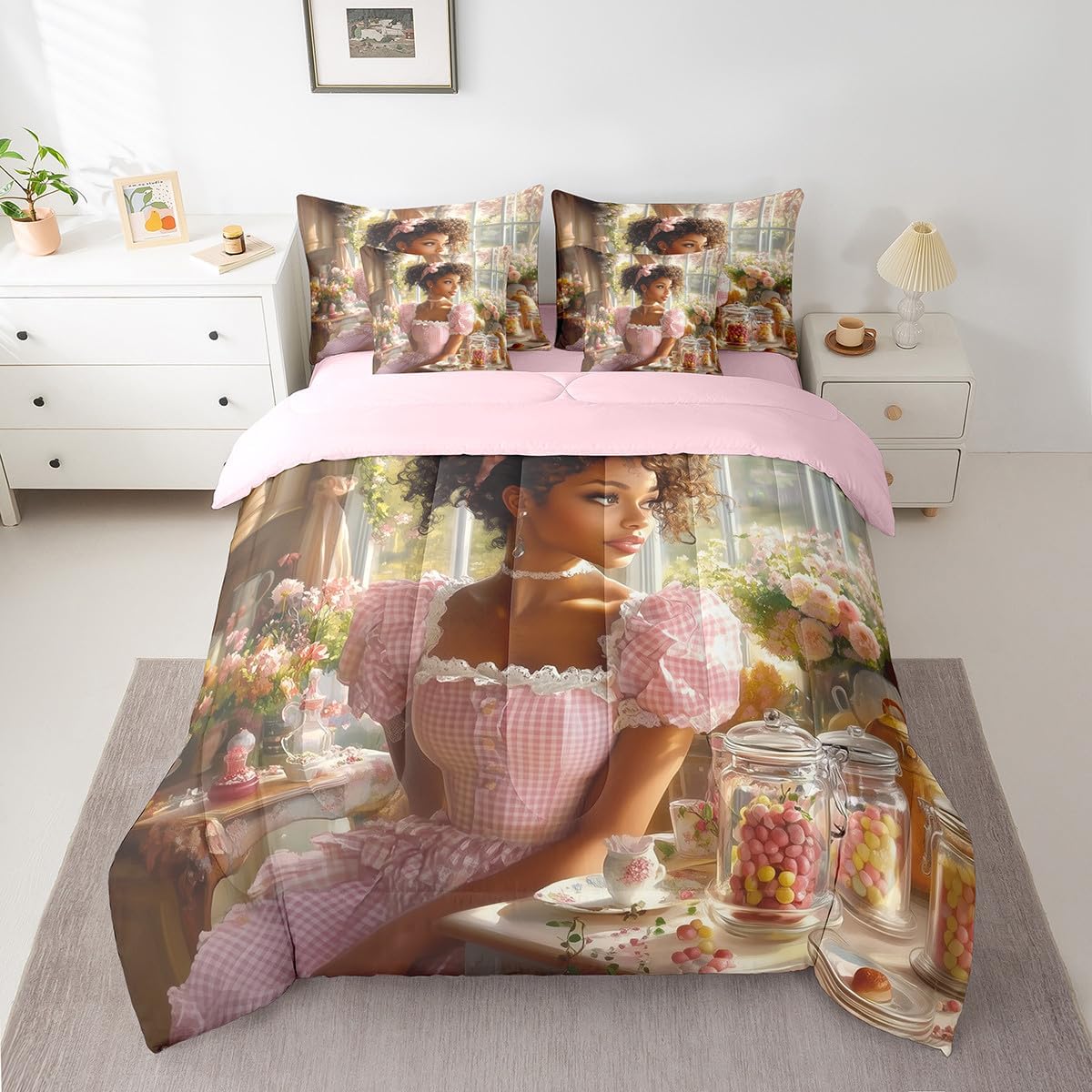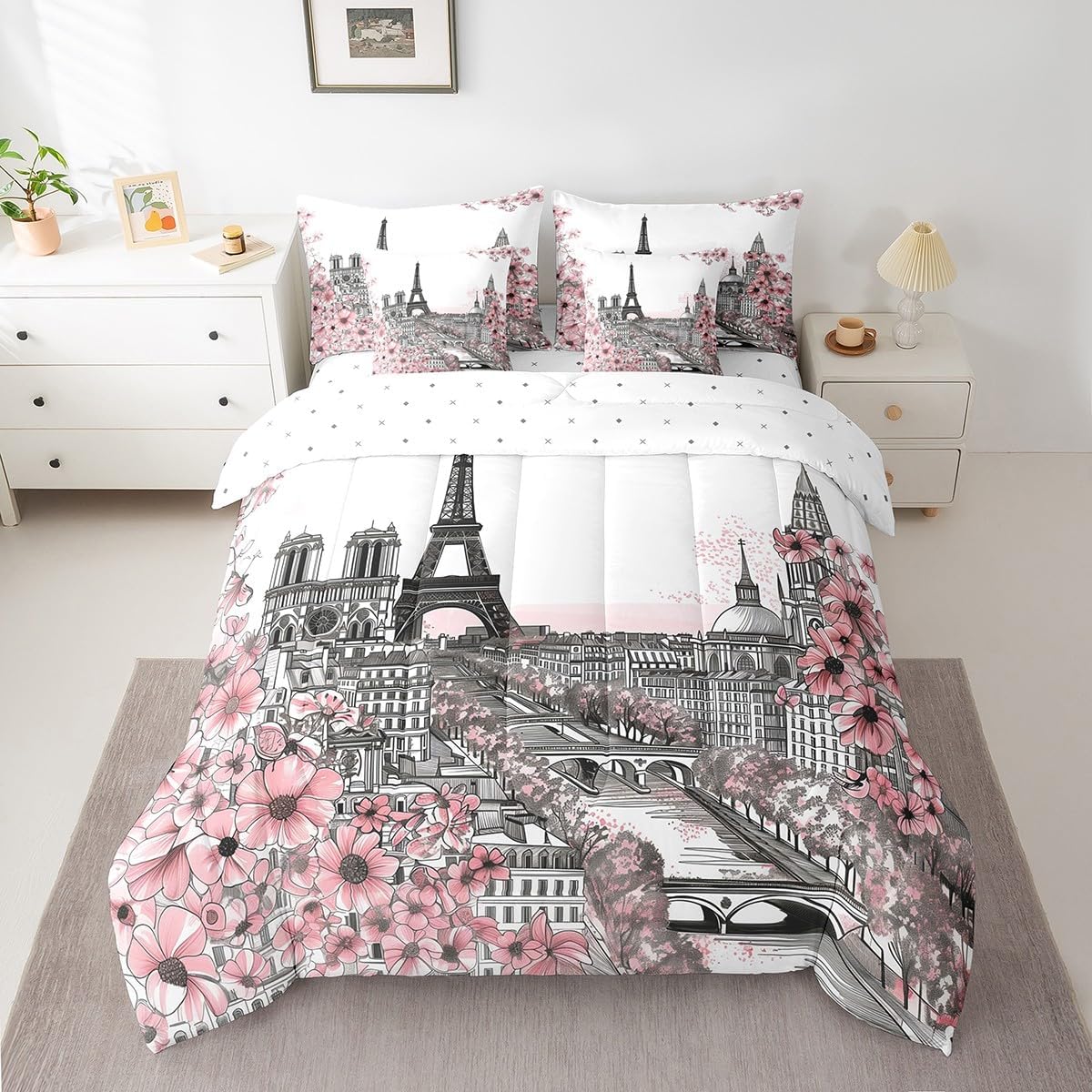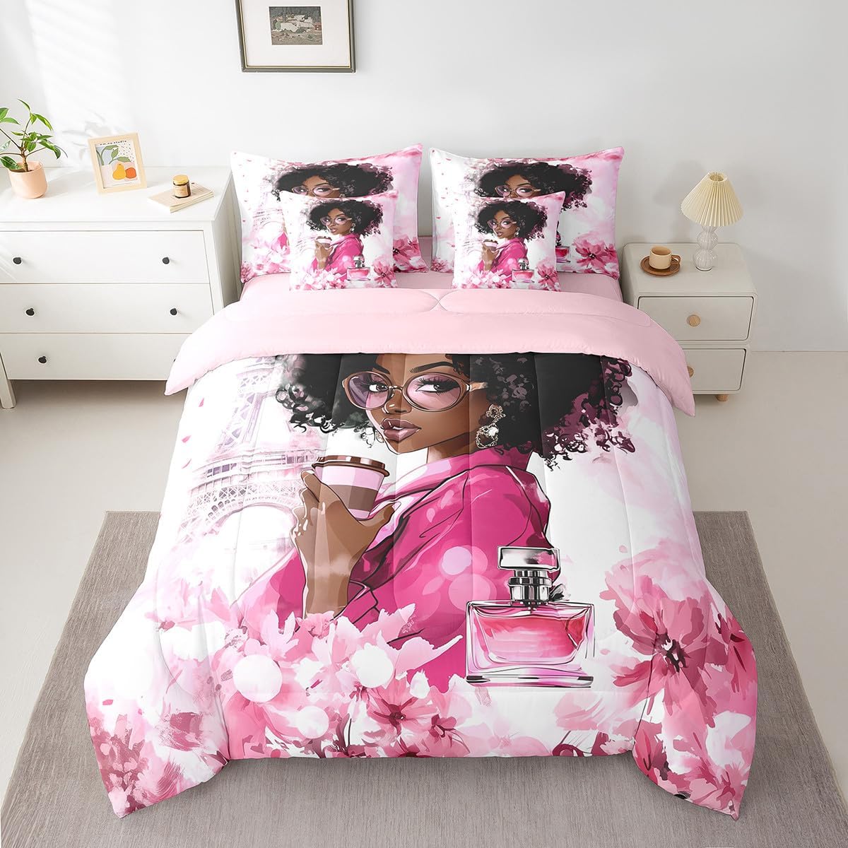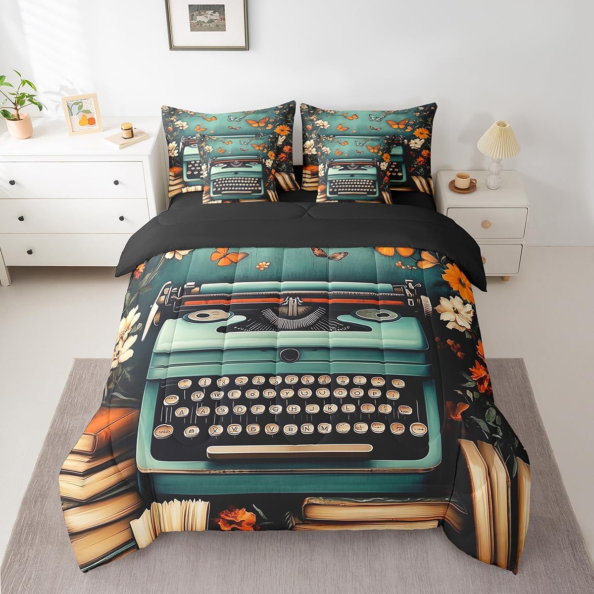 Welcome to our store. We have specialized in home textile for many years. We are contribute to provide the best customer service and products. We'll try our best to answer your questions and solve your problems. Size information: Twin size: 1 Down Comforter 68"W x 90"L, 1 Fitted Sheet 39"W x 75"L x 16"H, 1 Flat Sheet 67"W x 96"L, 2 Pillowcases 20" x 30", 2 Throw Pillow Covers 18" x 18" Full size: 1 Down Comforter 79"W x 90"L, 1 Fitted Sheet 55"W x 75"L x 16"H, 1 Flat Sheet 81"W x 96"L, 2 Pillowcases 20" x 30", 2 Throw Pillow Covers 18" x 18" Queen size: 1 Down Comforter 90"W x 90"L, 1 Fitted Sheet 60"W x 80"L x 16"H, 1 Flat Sheet 90"W x 102"L, 2 Pillowcases 20" x 30", 2 Throw Pillow Covers 18" x 18" King size: 1 Down Comforter 104"W x 90"L, 1 Fitted Sheet 78"W x 80"L x 16"H, 1 Flat Sheet 90"W x 106"L, 2 Pillowcases 20" x 36", 2 Throw Pillow Covers 18" x 18" Useful and practical: A luxurious product for homes,dorm rooms,hotels,guest rooms. Practical to use for being polyester, feels like cotton which is super soft and breathable. No chemicals used, no dye substance harming the health of you or your family. Unique design: Vivid Colors won't fade thanks to new 3D digital printing methods. These unique designs match well with various color palettes of your rugs, curtains, headboard, furniture, and all other decor accessories. Washing instructions: Machine wash separately in cold water,hang dry, do not bleach.