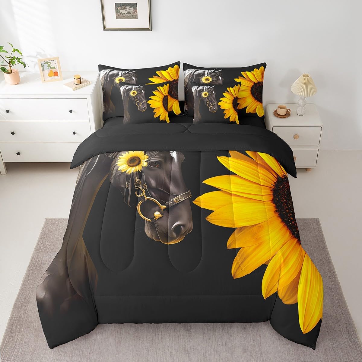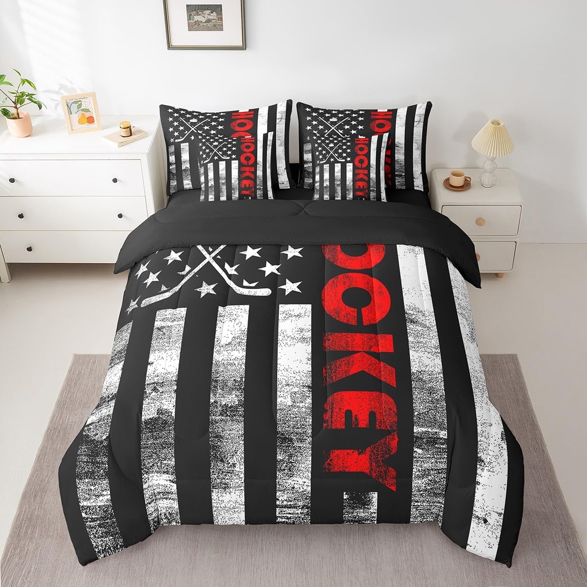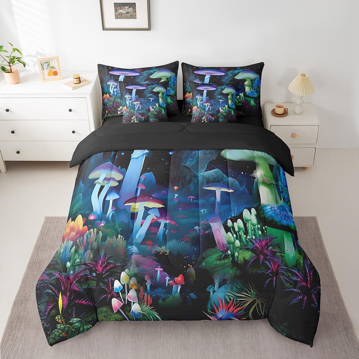 Welcome to Home Store We have specialized in home textile for many years,We sincerely hope that our products can give your room a brand new look Size Information Twin size : 1 Comforter 68"x90", 1x Fitted Sheet 39"x75"x16",1x Flat Sheet 96"x66", 2x Pillowcase 20"x30" and 2 Pillow Cover 18"x18" Full size : 1 Comforter: 79"x90", 1x Fitted Sheet 54"x75"x16",1x Flat Sheet 96"x66", 2x Pillowcase 20"x30" and 2 Pillow Cover 18"x18" Queen size : 1 Comforter: 90"x90", 1x Fitted Sheet 60''x80''x16",1x Flat Sheet 102''x90", 2x Pillowcase 20''x30'' and 2 Pillow Cover 18"x18" King size : 1 Comforter: 104"x90", 1x Fitted Sheet 78''x80''x16",1x Flat Sheet 106''x90", 2x Pillowcase 20''x35'' and 2 Pillow Cover 18"x18" Feature : We have products with different element patterns,which can easily decorate the theme room you want Our bedding is Soft and lightweight,but it can keep you warm for all season Our Comforter Pattern Printing are very definition Occasion and Presents our bedding set is not only great for your Bedroom or Guest Room,but also good for your Rv Bunks,it's also a great Present for your kids,families,friends,boyfriend,girlfriend,husband and wife Personalized As a manufacturer of digital printed home textiles, we follow current trends,Some of our products : Duvet cover,Comforter Set, Sheet Set,Blanket,Window Curtains,Shower Curtains,can be customized with names or Something you want to say to someone Our Wish We sincerely hope you'll love our bed set