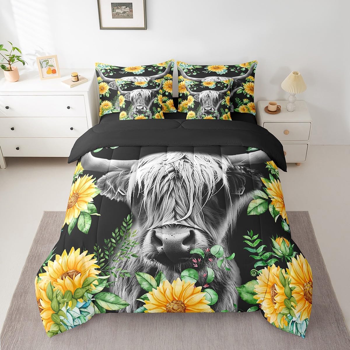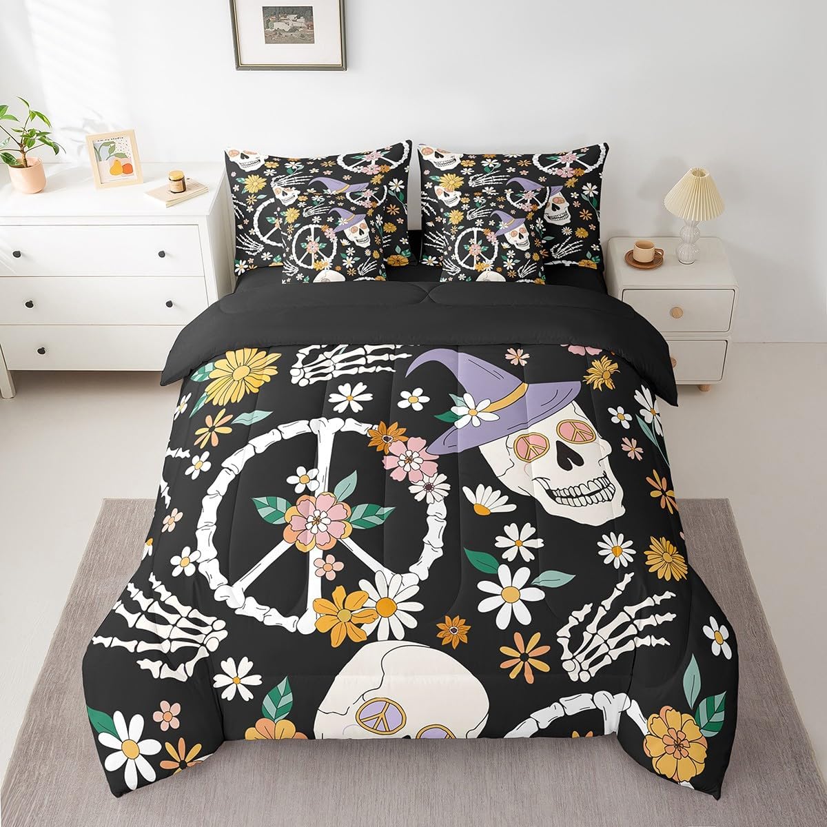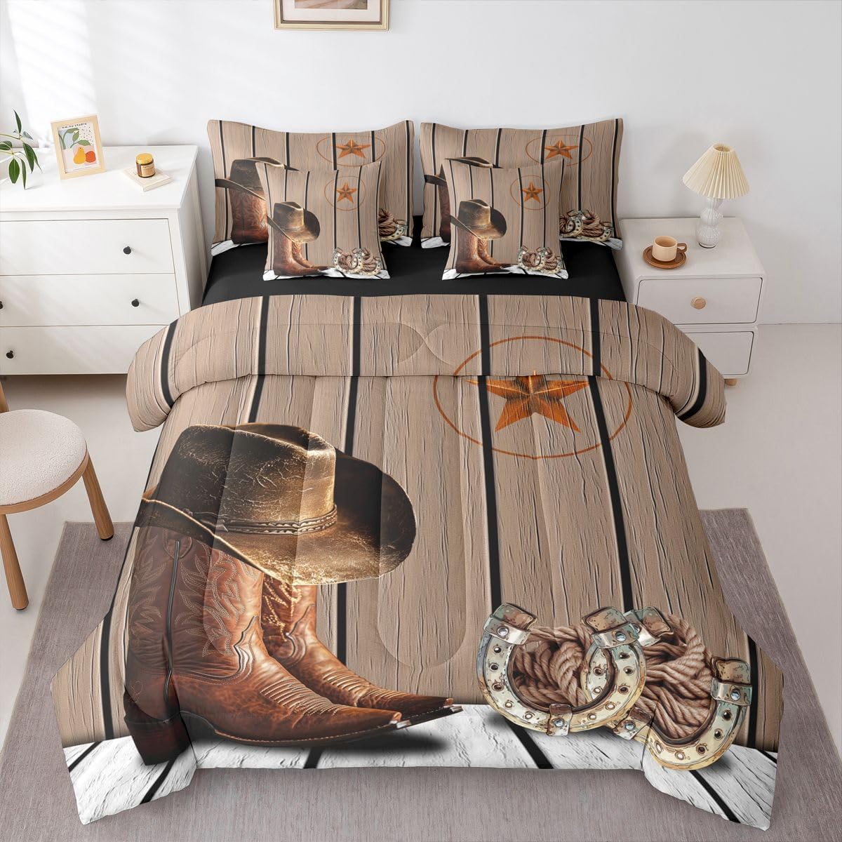 Welcome to Home Store We have specialized in home textile for many years,We sincerely hope that our products can give your room a brand new look Size Information Twin size : 1 Comforter 68"x90", 1x Fitted Sheet 39"x75"x16",1x Flat Sheet 96"x66", 2x Pillowcase 20"x30" and 2 Pillow Cover 18"x18" Full size : 1 Comforter: 79"x90", 1x Fitted Sheet 54"x75"x16",1x Flat Sheet 96"x66", 2x Pillowcase 20"x30" and 2 Pillow Cover 18"x18" Queen size : 1 Comforter: 90"x90", 1x Fitted Sheet 60''x80''x16",1x Flat Sheet 102''x90", 2x Pillowcase 20''x30'' and 2 Pillow Cover 18"x18" King size : 1 Comforter: 104"x90", 1x Fitted Sheet 78''x80''x16",1x Flat Sheet 106''x90", 2x Pillowcase 20''x35'' and 2 Pillow Cover 18"x18" Feature : We have products with different element patterns,which can easily decorate the theme room you want Our bedding is Soft and lightweight,but it can keep you warm for all season Our Comforter Pattern Printing are very definition Occasion and Presents our bedding set is not only great for your Bedroom or Guest Room,but also good for your Rv Bunks,it's also a great Present for your kids,families,friends,boyfriend,girlfriend,husband and wife Personalized As a manufacturer of digital printed home textiles, we follow current trends,Some of our products : Duvet cover,Comforter Set, Sheet Set,Blanket,Window Curtains,Shower Curtains,can be customized with names or Something you want to say to someone Our Wish We sincerely hope you'll love our bed set