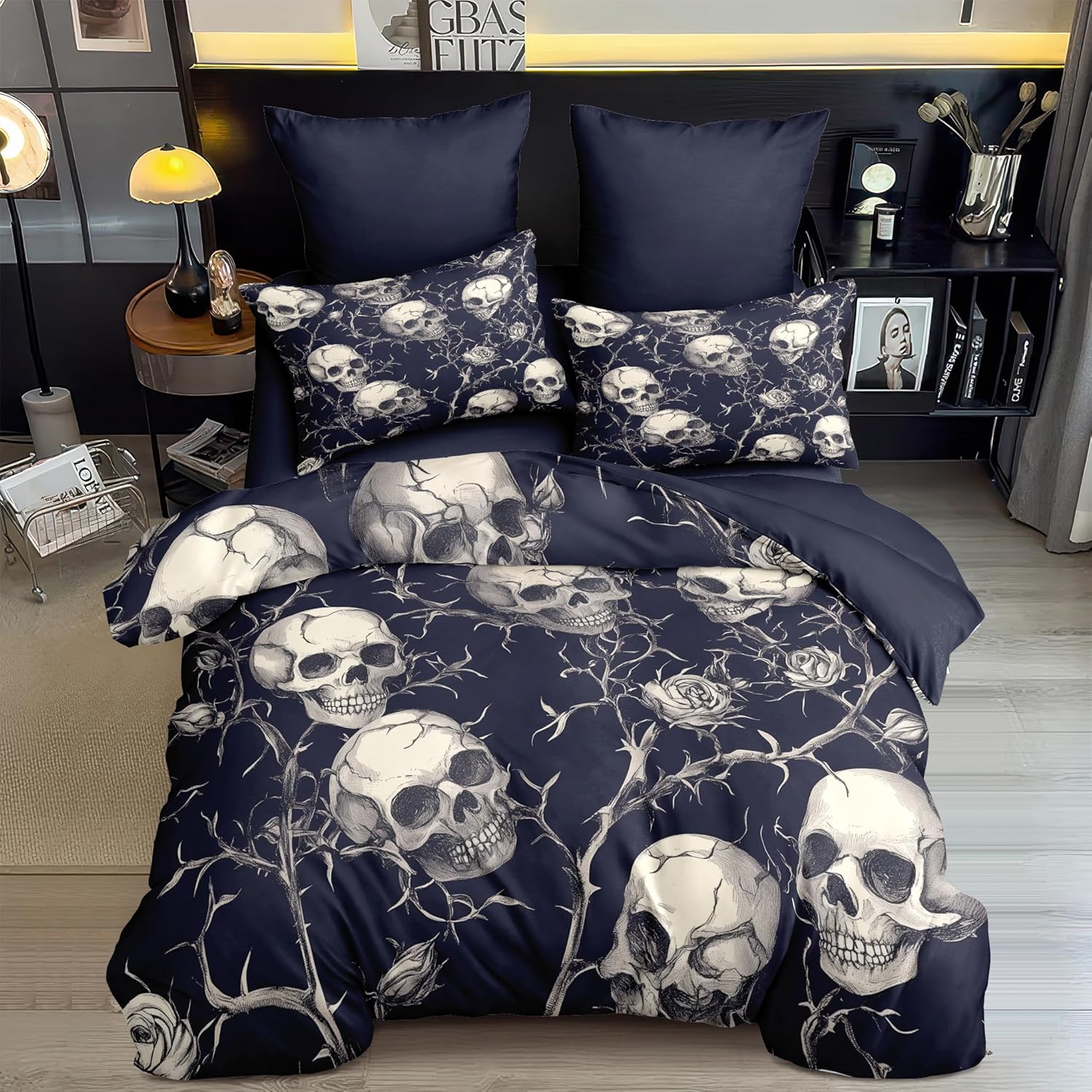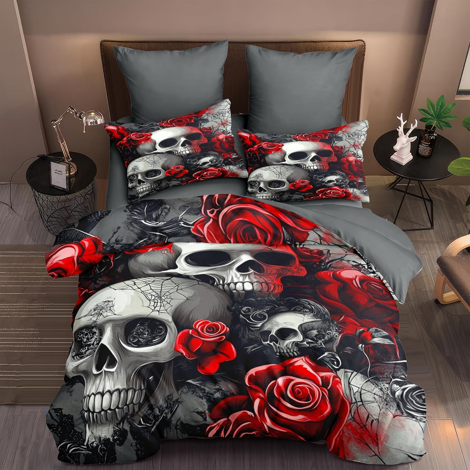 [Material Selection] This gothic skull Comforter set queen size is made from super soft microfiber and filled with 250g imported fiberfill. It’s lightweight, breathable, and soft, ensuring you won’t feel stuffy or sweaty during summer or winter. This gothic skull Comforter set can adjust your body temperature, providing more comfort and improving your sleep quality. [The Design] Our roses bedding set use the latest 3D printing technology to create crisp, colorfast patterns that won’t fade, using safe odorless dyes. The U-shape stitching ensures the microfiber filler is sewn tightly to prevent clumping or shifting. With a wide range of colors and styles to choose from, these unique patterns are suitable for all types of interior decor, including vintage, modern, farmhouse, ethnic, sports, romantic, and more. Perfect gifts for children and teens during holidays, New Year, Valentine’s Day, and gothic skull. [Size] full Size: Comforter (79" x 90"), 2 pillowcase (20" x 30"). king Size: Comforter (90" x 104"), 2 pillowcases (20" x 36"). queen Size: Comforter (90" x 90"), 2 pillowcases (20" x 30"). twin Size: Comforter (68" x 86"), 1 pillowcase (20" x 30"). Tips The roses Comforter set queen size are only printed on the front; the back is soild. [Cleaning Method] Our roses bedding set for girls is machine washable, saving you time and energy. Wash gently in cold water and tumble dry at low temperature. Do not bleach. [Satisfaction Service] We are committed to providing high-quality, comfortable and beautiful bedding set so that everyone can enjoy a quality sleep in their bedroom at home. We offer exchange service. If you encounter any issues, please contact us promptly. We will process your request as soon as possible within 24 hours.