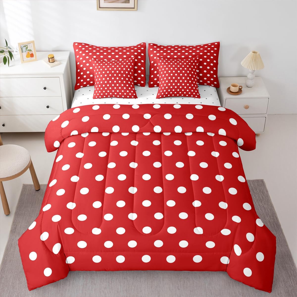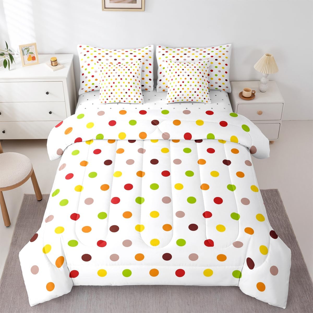 Size Information Twin : 1 Comforter: 68"x90",1x Fitted Sheet 39"x75"x16",1x Flat Sheet 96"x66",2x Pillowcases 20"x30" and 2 Pillow Cover 18"x18" Full : 1 Comforter: 79"x90",1x Fitted Sheet 54"x75"x16",1x Flat Sheet 96"x66",2x Pillowcases 20"x30" and 2 Pillow Cover 18x18" Queen : 1 Comforter: 90"x90",1x Fitted Sheet 60"x80"x16",1x Flat Sheet 102"x90",2x Pillowcases 20"x30" and 2 Pillow Cover 18"x18" King : 1 Comforter: 104"x90",1x Fitted Sheet 78"x80"x16",1x Flat Sheet 106"x90",2x Pillowcases 20"x36" and 2 Pillow Cover 18"x18" Style Variety: Available in multiple styles. Suitable Spaces: For use in bedrooms, guest rooms, living rooms, or RVs. Printing Process: Manufactured using reactive printing and dyeing technology. Design Feature: Diverse pattern options. Care Instructions: Machine washable. Air dry. Low-heat ironing recommended. Not suitable for bleach, dry cleaning, or machine drying. Intended Decor: Designed for home textile applications.