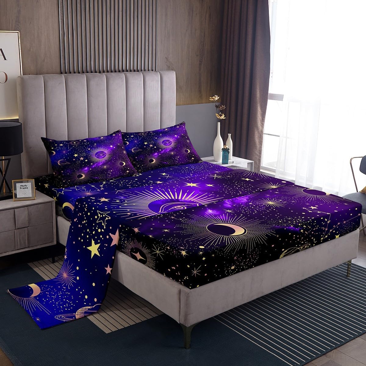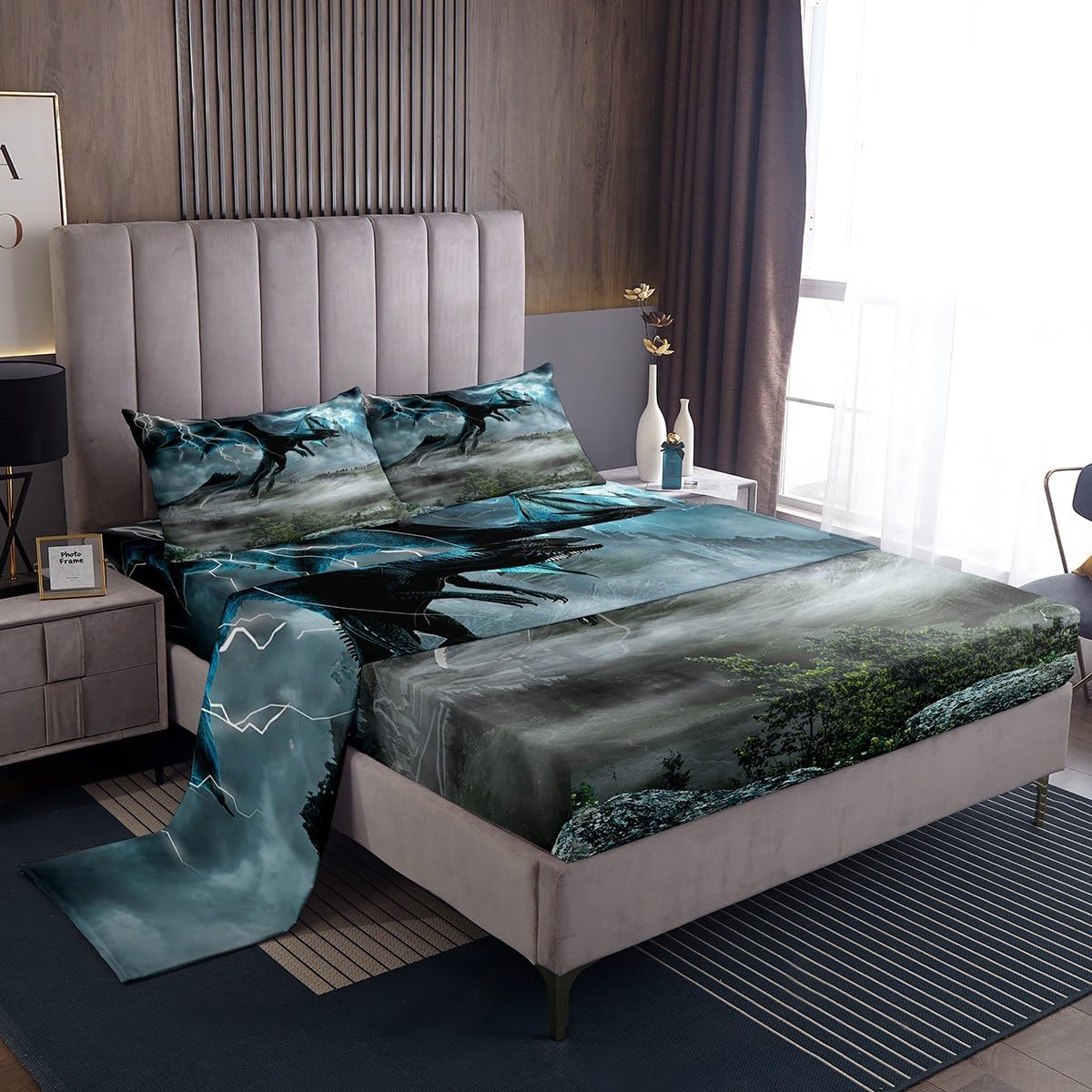 Package Include: Fitted Sheet, Flat Sheet and Pillowcase. High quality Fitted Sheet Set 3D Pattern Bedding Set, simply decorating your rooms any time you want, bringing you fresh feel for year round use. Size Information: Twin size 3pcs Fitted Sheet set: 1 Fitted Sheet 39"W x 75"L x 16"H, 1 Flat Sheet 66"W x 96"L, 1 pillowcase 20" x 30" Full size 4pcs Fitted Sheet set: 1 Fitted Sheet 54"W x 75"L x 16"H, 1 Flat Sheet 81"W x 96"L, 2 pillowcase 20" x 30" Queen size 4pcs Fitted Sheet set: 1 Fitted Sheet 60"W x 80"L x 16"H, 1 Flat Sheet 90"W x 102"L, 2 pillowcase 20" x 30" King size 4pcs Fitted Sheet set: 1 Fitted Sheet 78"W x 80"L x 16"H, 1 Flat Sheet 90"W x 106"L, 2 pillowcase 20" x 36" Personalize your bedroom: Beautiful design and colorful print, makes your bedroom unique and brings you a wonderful dream. Washing instructions: Machine wash separately in cold water,hang dry, do not bleach. Occasion: The soft Fitted Sheet bedding sets designed for Children ,Adult, Men, Women, Teens. This Bedding set is also suitable for full seasons, Spring, Summer, Autumn and Winter. More Decor: Search our store to get more christmas theme, new year theme, autumn fall theme, any holiday theme, modern abstract, farmhouse rustic theme, simple pattern, garden flowers etc. home decoration. Warm Tips: 1.Please allow 1-3cm error due to manual measurement. 2. Actual color may vary from the color on your screen due to monitor color restrictions.
