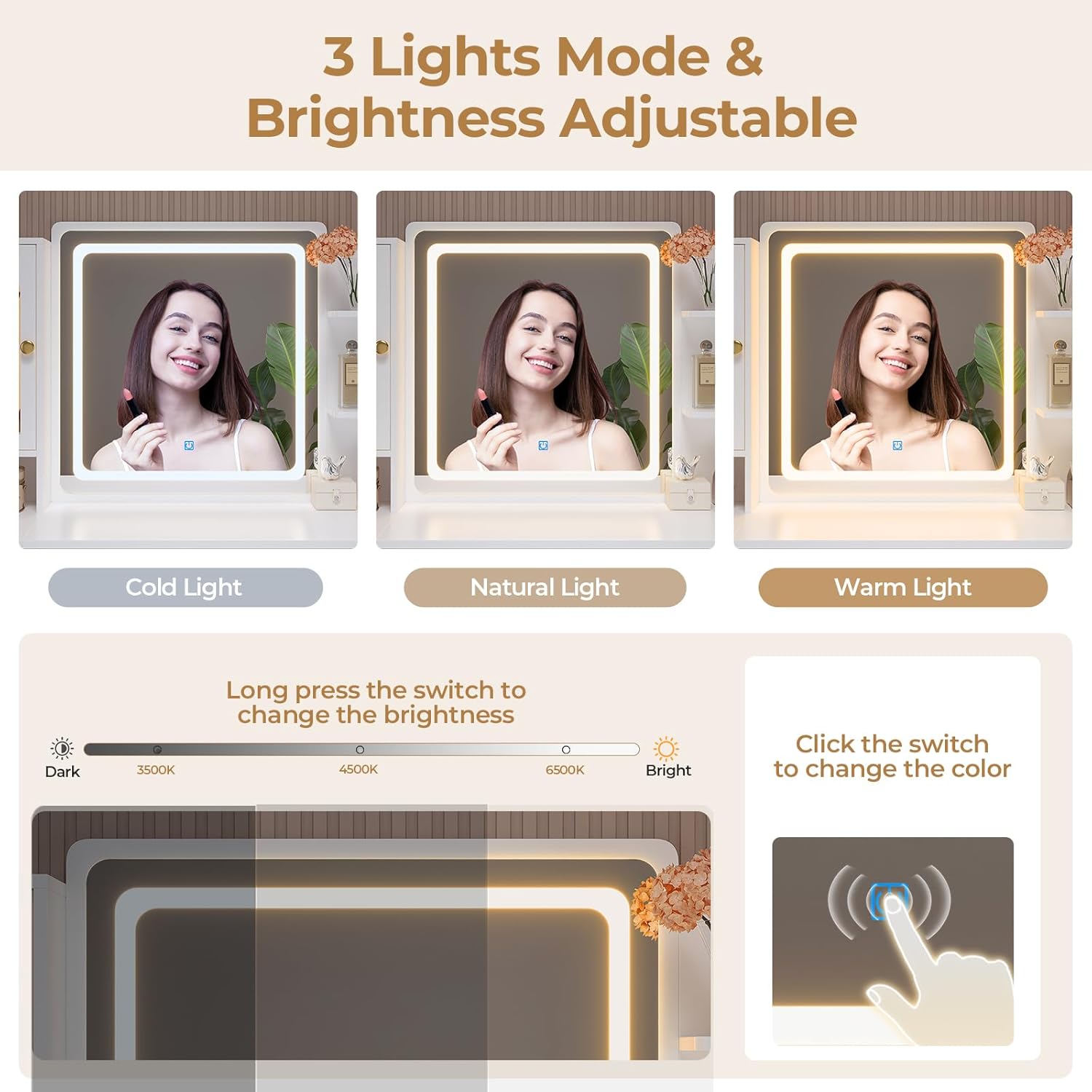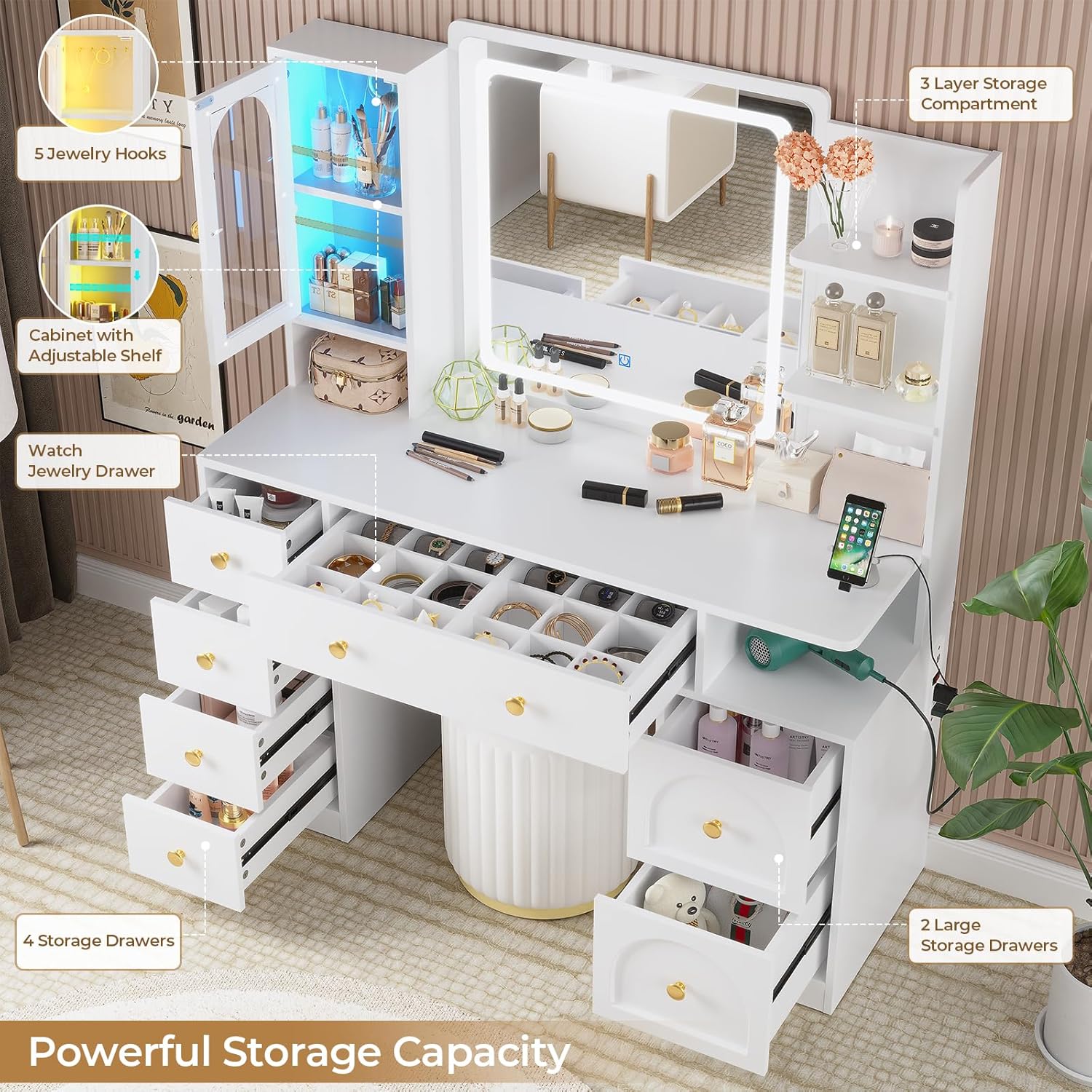 | Included Components | Mirror and Lights, Vanity Desk |