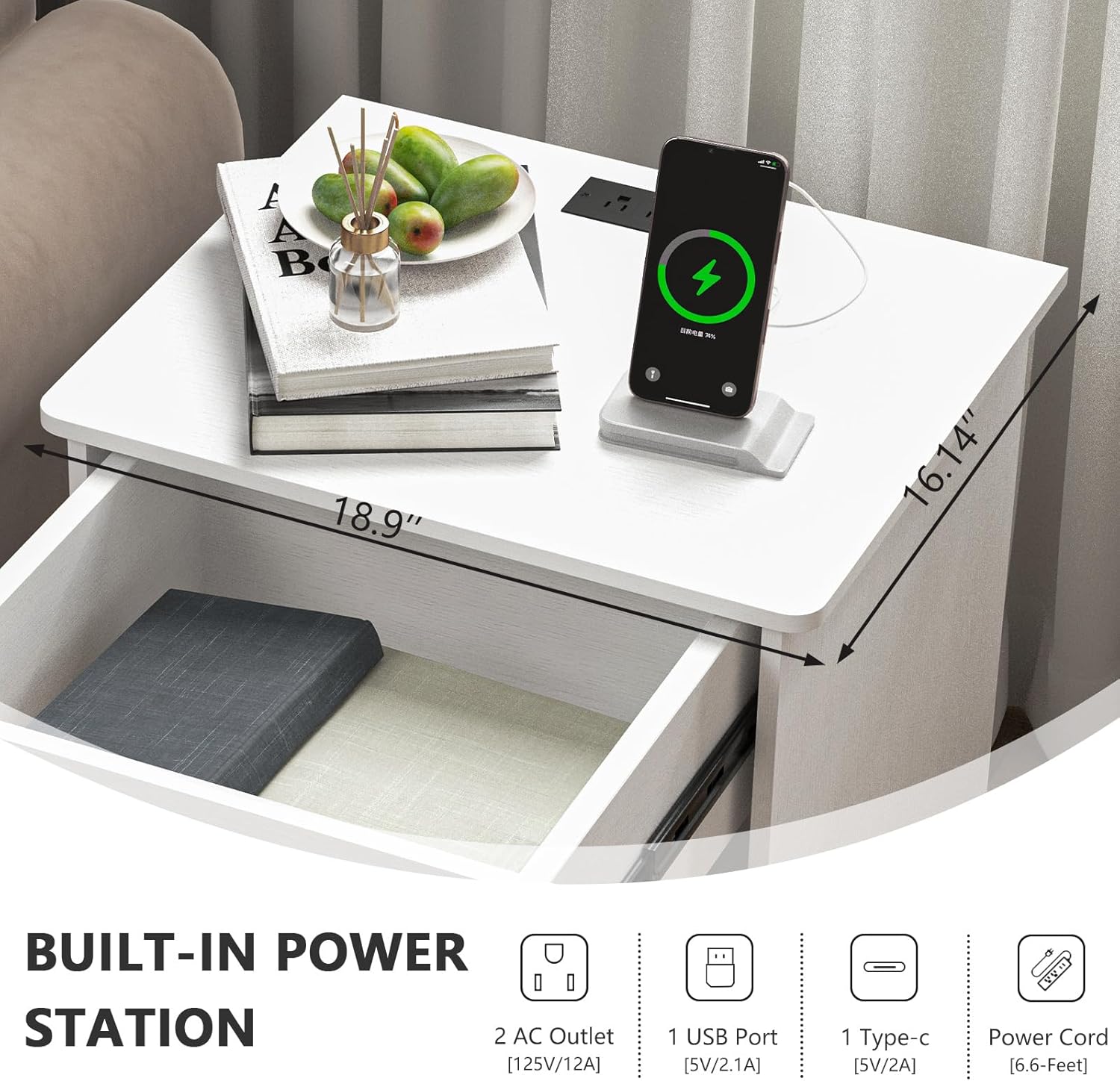 | Model Name | Night Stand with Charging Station |