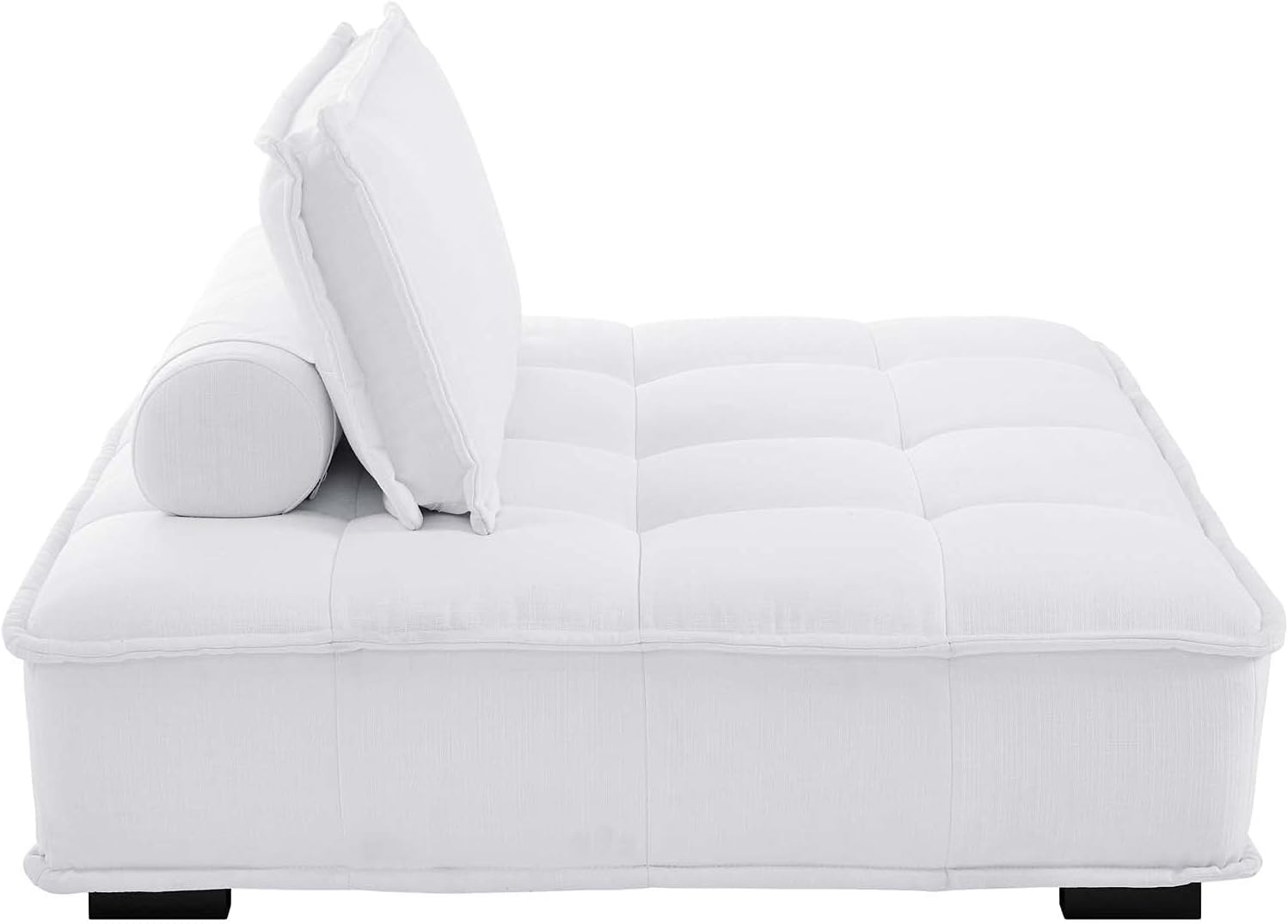 Sprawl out amidst comfort and style on the Saunter Tufted Fabric Armless Chair. With square biscuit tufting, French piping detail, and soft polyester upholstery, this sectional sofa armless chair brings tailored style to your living space or lounge area with its charming low profile silhouette. A removable bolster pillow supporting a seat back cushion offers a comfortable place to rest while watching TV, relaxing, or entertaining. Dense foam padding and a sinuous spring support system grant a premium seating experience for all occasions. This sectional sofa piece rests atop L-shaped rubberwood legs with non-marking foot caps. Armless Chair Weight Capacity: 300 lbs.
