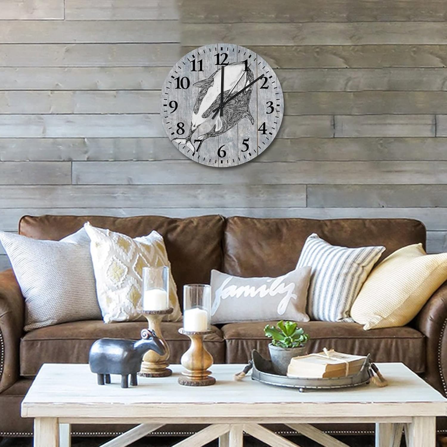 Fish small wall clock Novelty White and Blue Starfish and Seashell farmhouse clock Silent Non Ticking Arabic Numeral Clock Living Room Office 15 Inch??Details:Product Size: 10/12/15 inches, (25/30/38 cm)Shape:RoundMaterial: Wood??Functional Home DécorThis Shells and Starfish Beach Decorations clock aren't just for timekeeping. They function as beautiful wall decor pieces, beyond telling time, and bring both style and purpose to any room.A charming home decoration, very suitable as a housewarming gift, making the home more warm. Suitable for any room, you can put it in any room such as home, living room, master bedroom, kitchen, bathroom, home office, etc. Elegant, durable and stylish.??Clock Hands Troubleshooting Guide:Check that the battery is a new battery and not a used battery.Make sure the hour and minute hands are not crossing or touching each other. If they are, adjust the hands by slightly bending them.See if the center pin that holds the hands together is firmly pushed in or screwed on, depending on the style.If hands are still not moving after the above, please reference the hands replacement instructions included with all of our open face clocks.