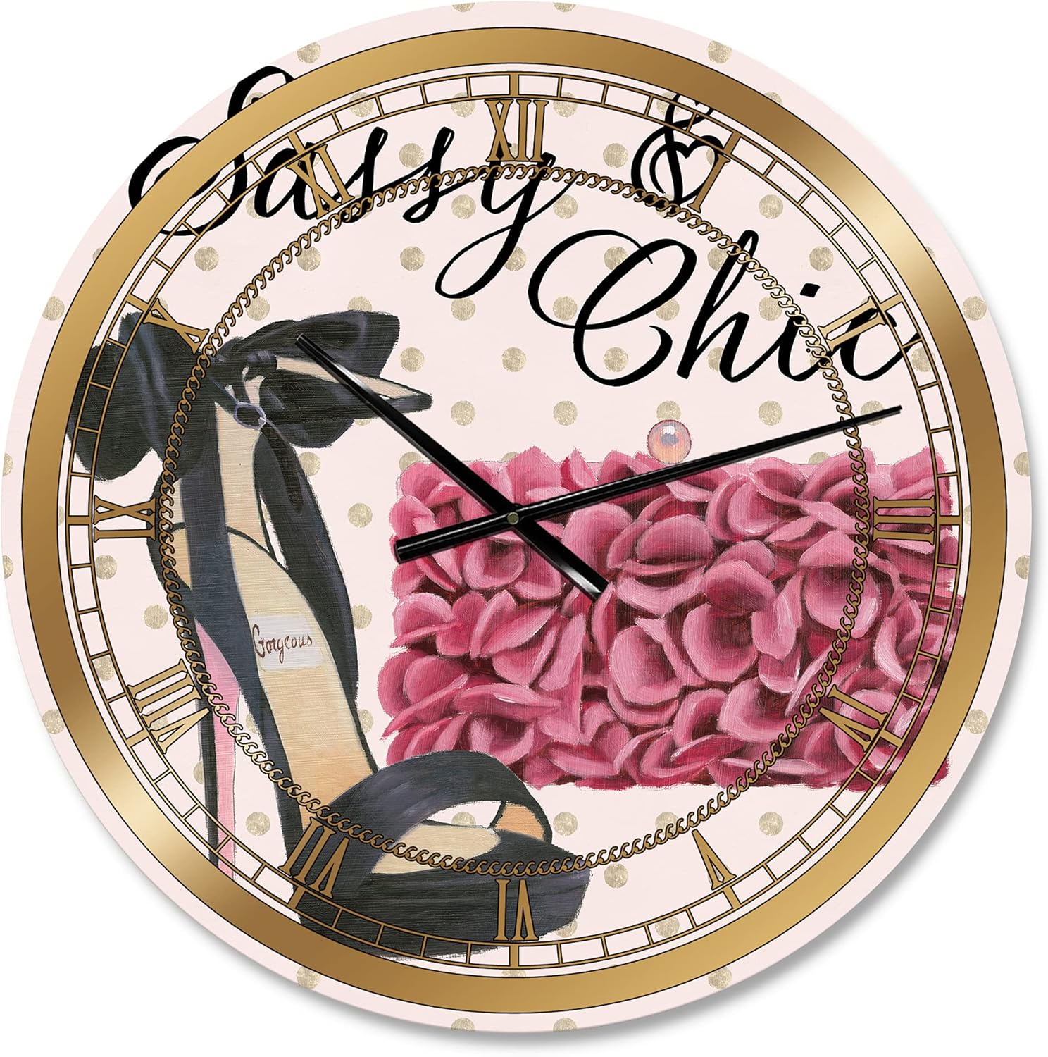 An exquisite design bringing beauty to your home and office, this Pink Glam circle wall clock is printed on one-hundred percent firm aluminium. The smooth surface is glossy and very reflective, giving this round clock an elegant and contemporary style. For your convenience, this Glam fashion High Heels II Clock arrives with an AA battery included and is ready to be installed on your wall right away. This Glam Oversized round clock is available in various sizes, and guarantees to be the center of attention of your space. Features - 1 mm aluminium grade sheet metal - Available in circle 23x23 29x29 36x36 - High Quality Gloss Coating provides deeply vibrant colors - The mounting frame creates a floating artwork illusion - All mounting brackets and hanging instructions are included - Use a microfiber cloth for easy cleaning - AA battery standard included with every order - Effortless to install and hang