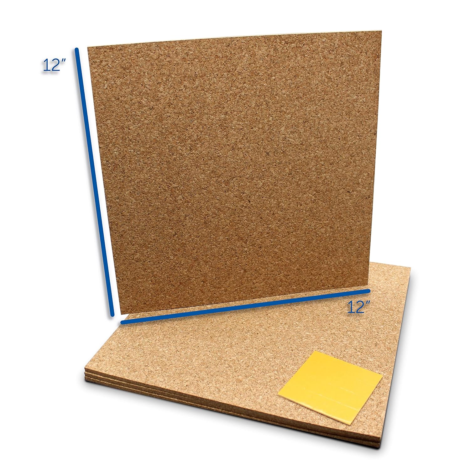 Natural cork board tiles are ideal for a variety of art and crafts projects. Self-healing cork in light mottled brown can be painted, cut, and added to other materials to create a one-of-a-kind project. You can cut and adhere them to the wall with the adhesive tabs that are included. Tiles are 12" x 12" and 5MM thick. Includes 16 tiles. Made in Portugal.