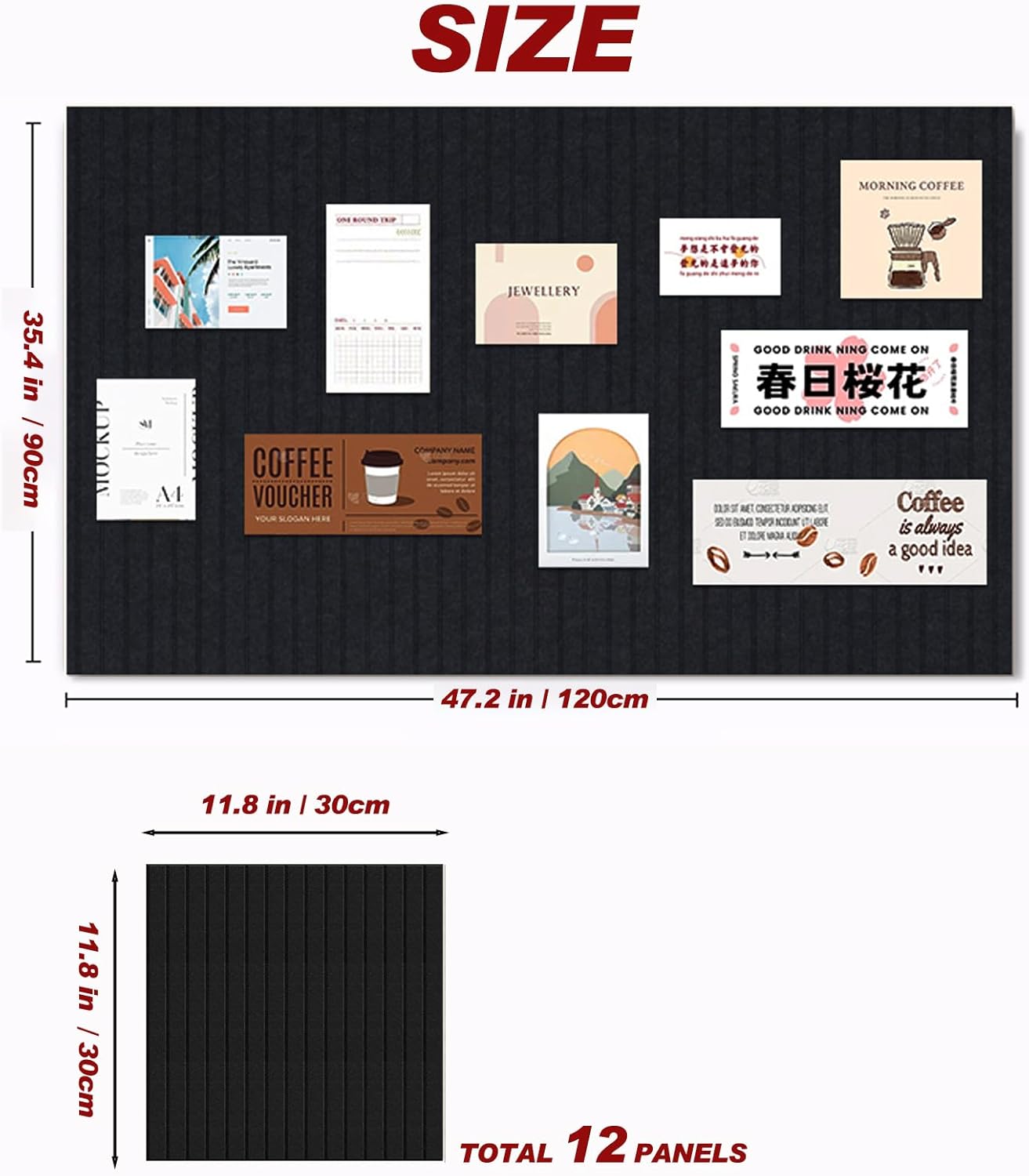 Why Choose Our Felt Wall Tiles Bulletin Boards? 【Felt Wall Tiles】 Unleash your creativity and customize your space with our versatile felt boards. Each package includes 12 high-density felt bulletin board tiles, measuring 11.8 x 11.8 x 0.35 inches (30x30cm, 9mm thick). Our cork boards are easy to customize, allowing you to DIY various sizes of felt wall surfaces, perfect for any space, be it homes, apartments, or offices. 【Simplicity at Its Best】 Enhance plain walls with our vertical striped felt boards, adding a touch of subtle beauty and a sleek, minimalist look. Perfect for different spaces such as kitchens, apartments, living rooms, classrooms, and offices, our unique panel boards elevate your decor. Our felt tiles for wall also absorbs sound, reducing noise and echoes, making it suitable for studios, recording rooms, game rooms, home theaters, and more. 【Versatile Functionality】 The felt board for wall easily holds your photos, notes, messages, memos, calendars, menus, reminders, and more, making it an ideal backdrop for storing files, artworks, school projects, pictures, notes, papers, tickets, and more. The 9mm thickness securely holds push pins, making it your go-to choice for storage and creative expression. 【Secure Adhesion, Wall-Friendly】 The product comes with a built-in magic tape on the back, providing strong adhesion to prevent the pin boards from falling off the wall. It can be safely removed without damaging the wall, leaving no adhesive residue or harming the wall paint. Please apply the felt tiles panels on smooth surfaces and avoid applying them on peeling, dusty, or uneven surfaces. 【Eco-Friendly, Odorless】 Made from high-quality, eco-friendly polyester fiber material, our product is safe, odorless, moisture-resistant, and non-deforming. Its lightweight design makes installation a breeze, allowing you to easily stick it wherever you desire. The soft colors also help uplift your mood.