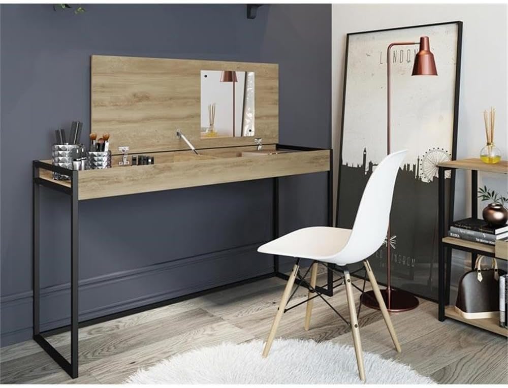 The Noa office desk in oak laminate with storage by Hip 23 provides both versatile style and comfort with a ultra-modern that can easily be integrated into your current room decor. This Noa office desk features one lift with mirror adding elegance with functionality to your space. Our Hip 23 Noa office desk is manufactured using quality materials that will last for many years to come and is backed by our 1 Year limited warranty against manufacturer defects. Size: 53" W x 18" D x 30" H