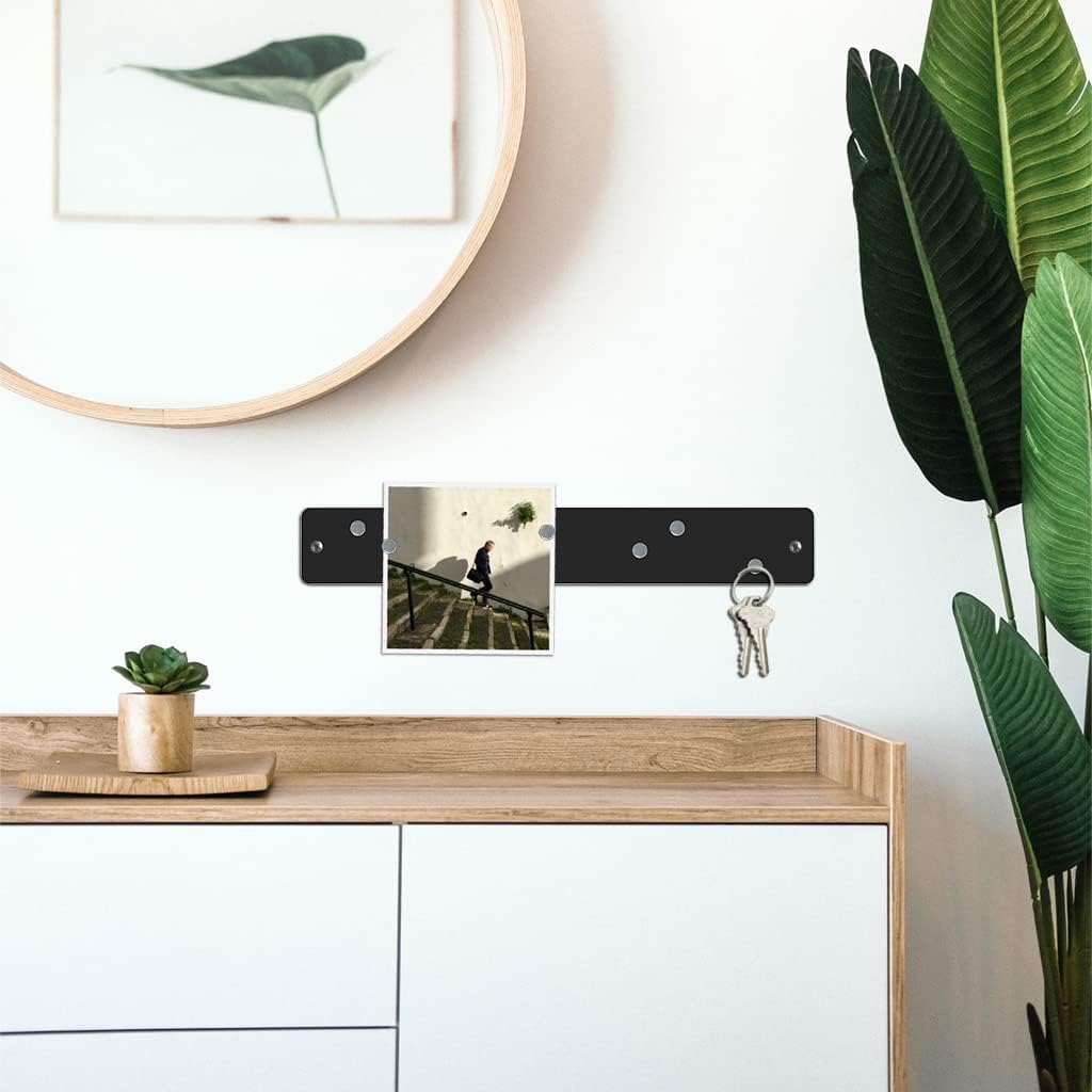 The world's first magnetic strip bulletin board, mini version! 6 strong rare earth (neodymium) magnets hold photos or memos to this 2 x 14 inch (5 x 35.5 cm) magnet board. Magnets make display changes easy, and the long, narrow profile can hang horizontally or vertically. Wall mounting hardware included. Available in red, sky blue, white, orange, black, pink, spring green, plum, navy, and stainless.