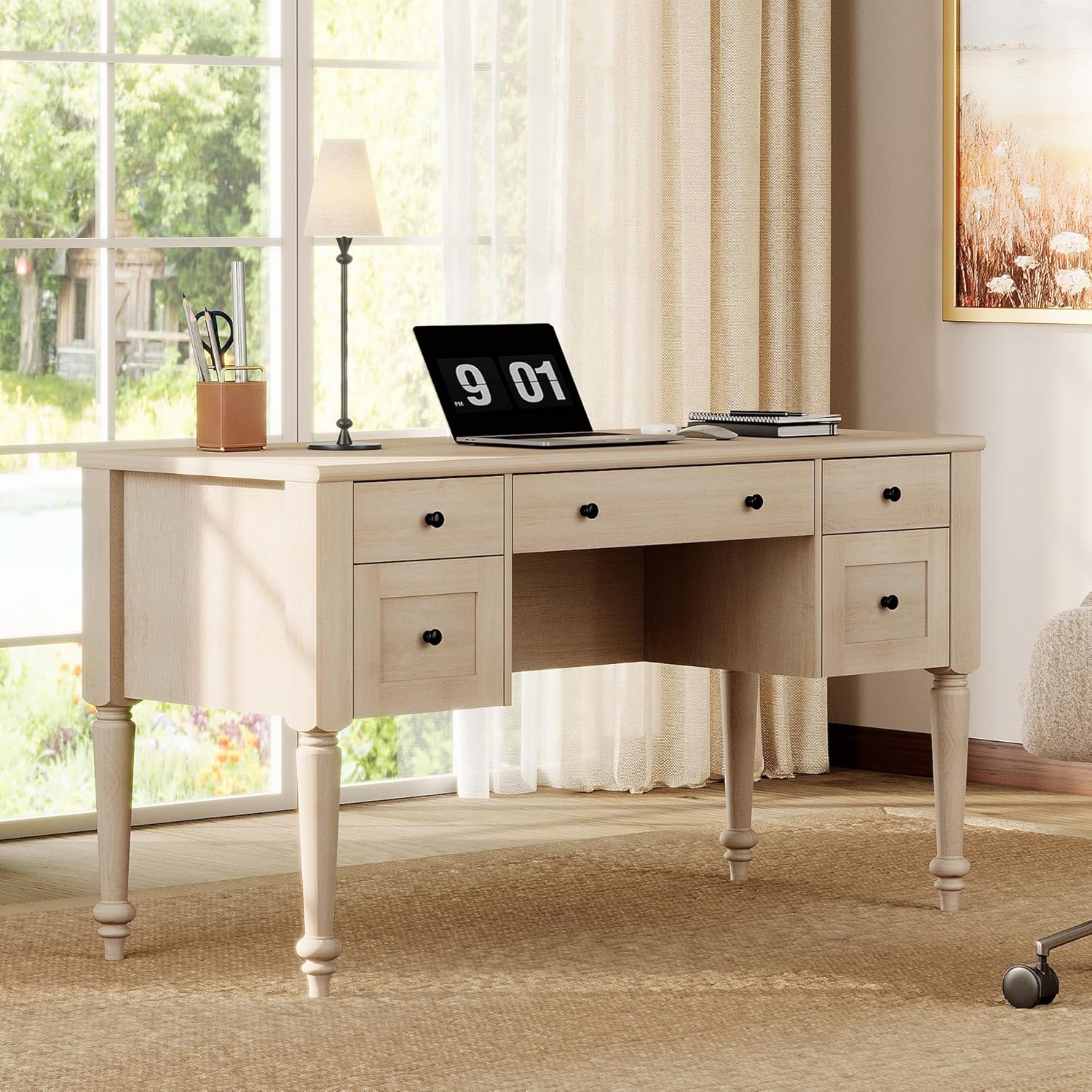 | Storage Options | 5 drawers, 2 storage doors, 2 open shelves |